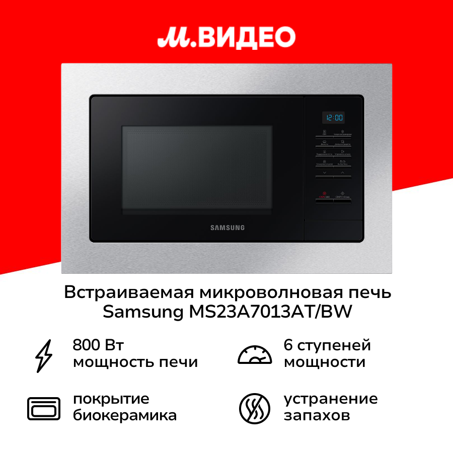 Samsung Ms23a7013al/bw Микроволновая печь встраиваемая, 23л.,800Вт, белый