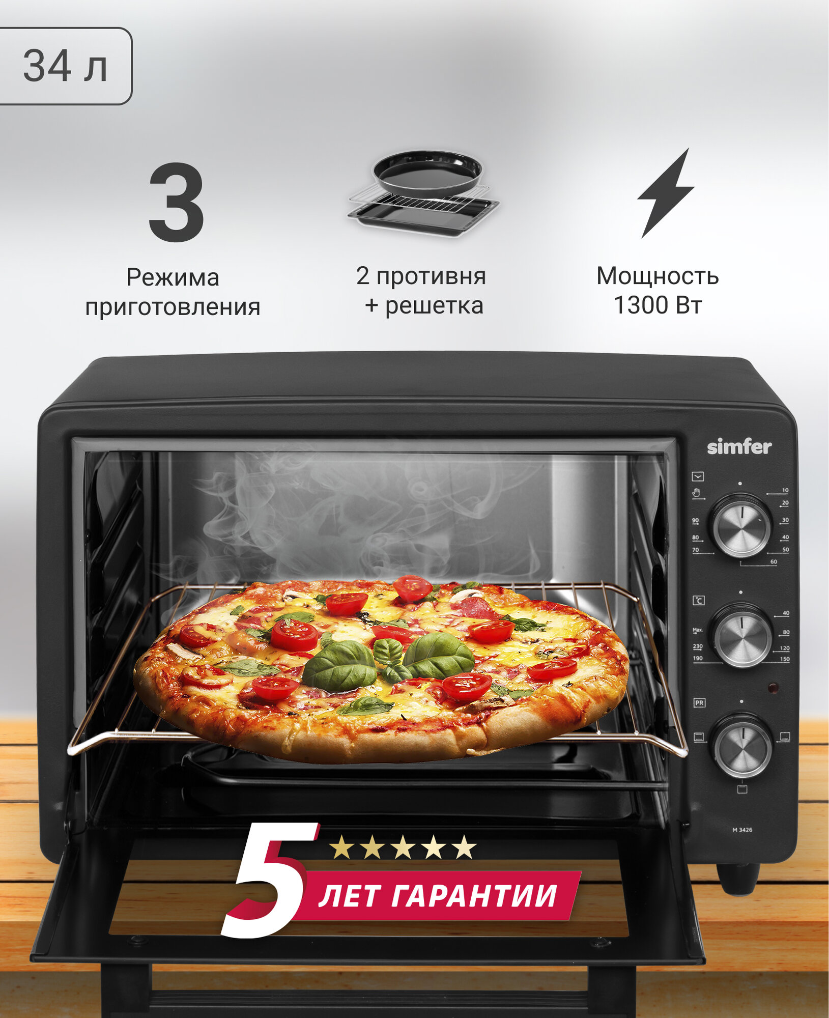 Мини-печь Simfer M3426 ALBENI Comfort, 3 режима работы