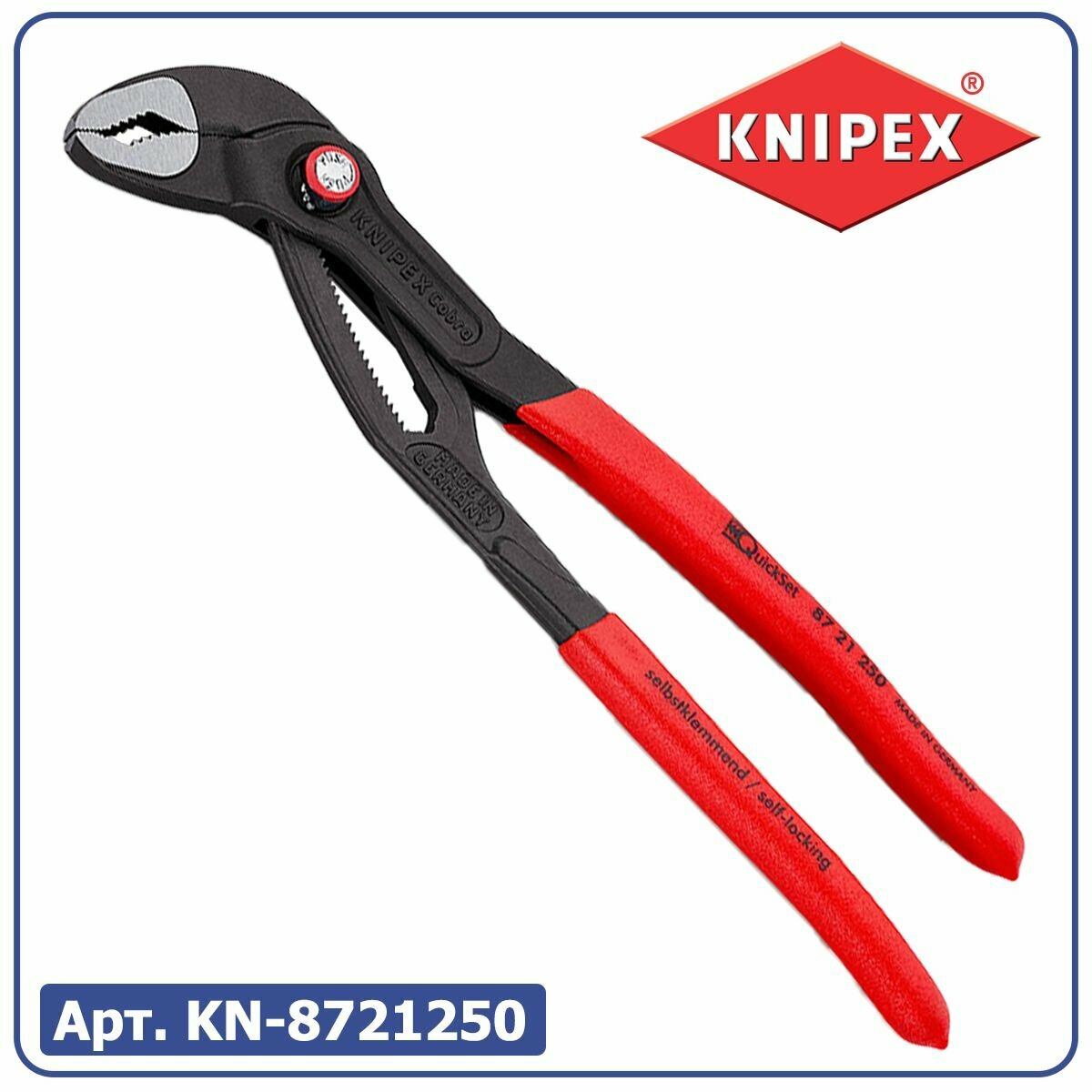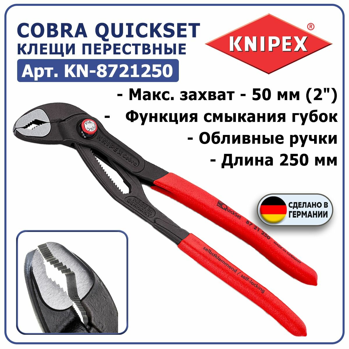 Купить Клещи переставные универсальные KNIPEX COBRA QuickSet KN-8721250, захват - 50 мм (2"), длина 250 мм, обливные ручки, регулировка на детали