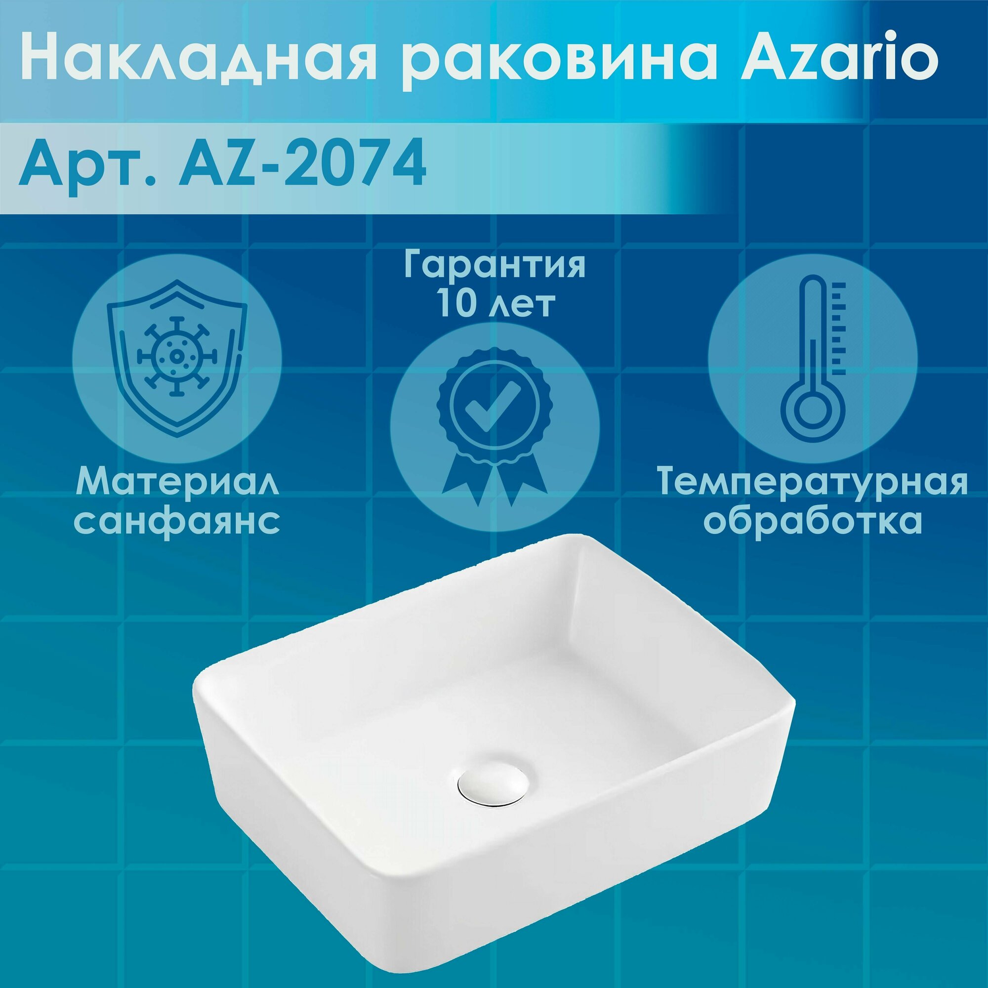 Раковина накладная Azario AZ-2074