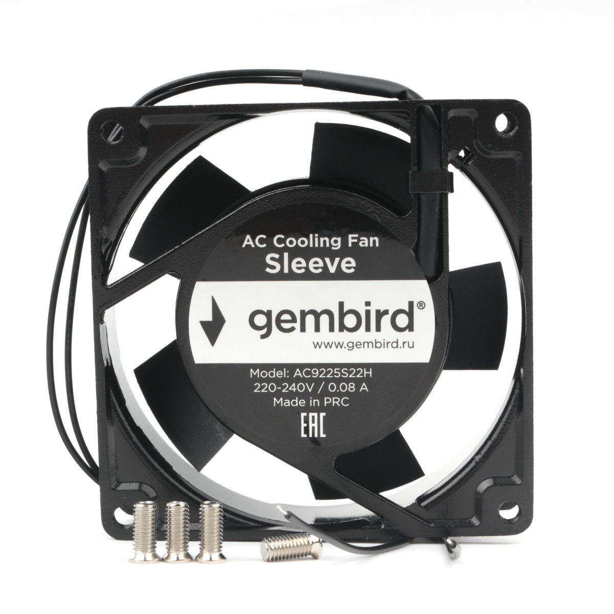 Вентилятор Gembird, 92x92x25, AC, 220, втулка, 2 pin, провод 30 см