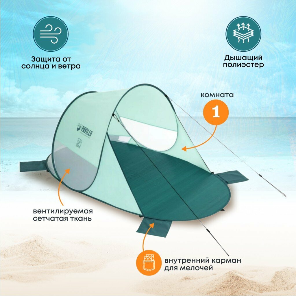 Палатка пляжная 2-мест, 200х120х90 см, 1 сл, 1 комн, Bestway, Beach Quick 2, 68107 интересное: