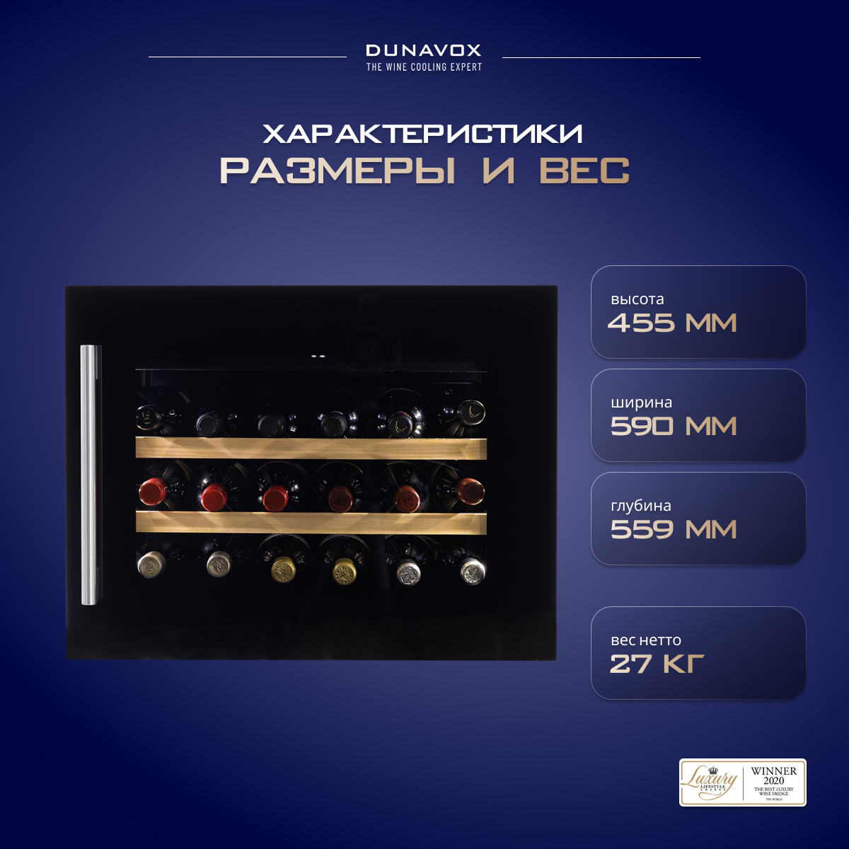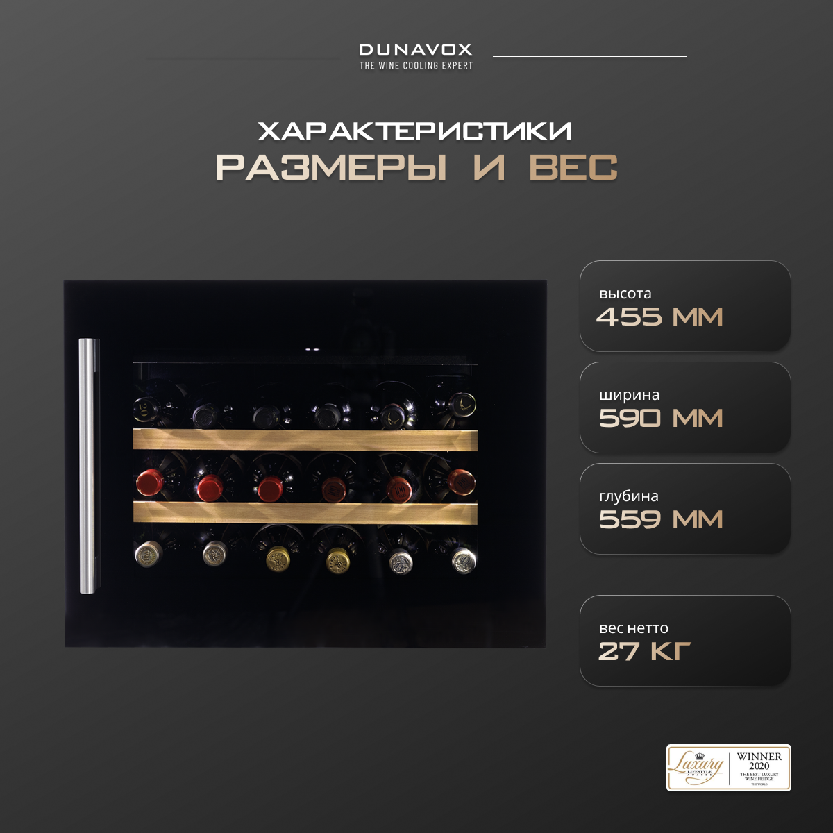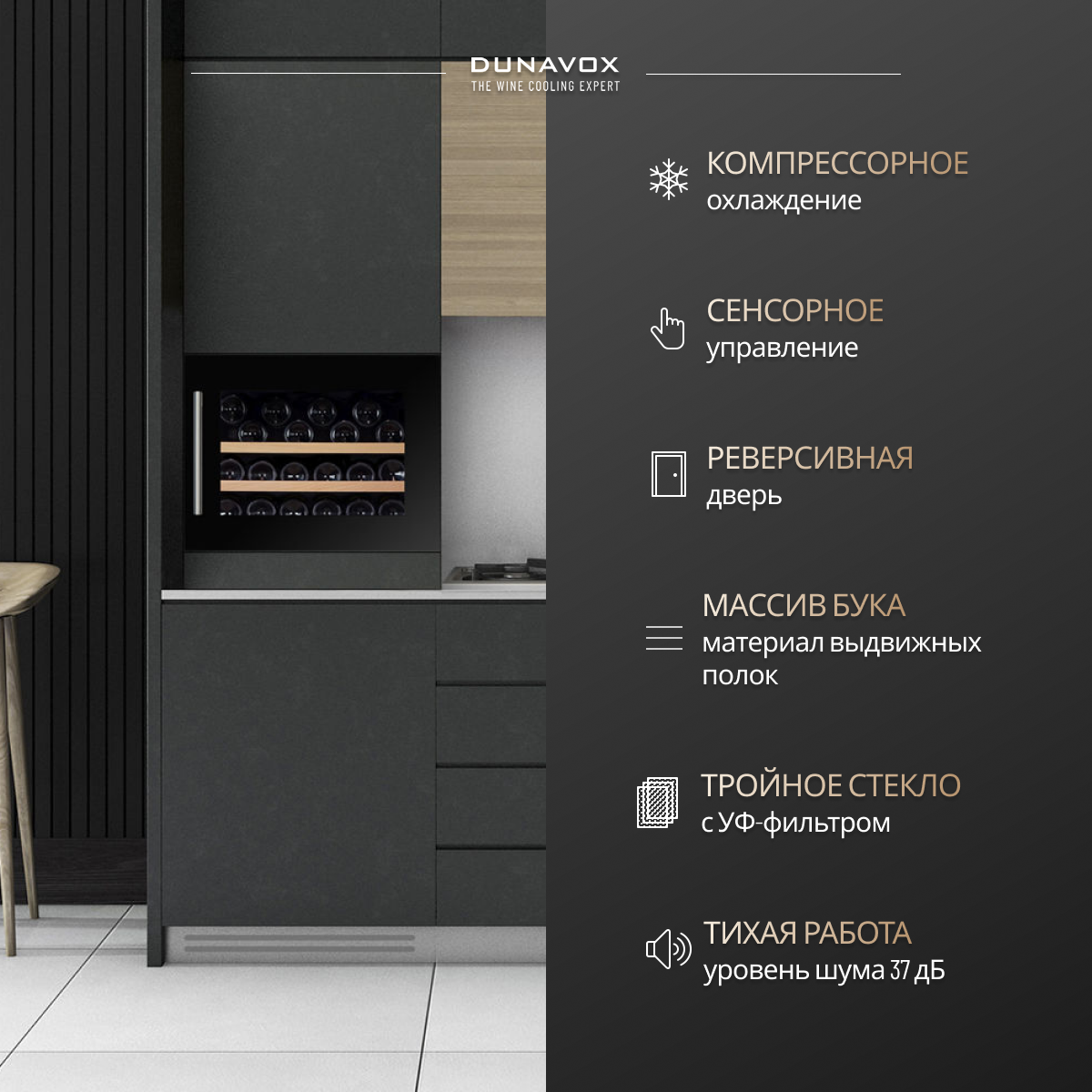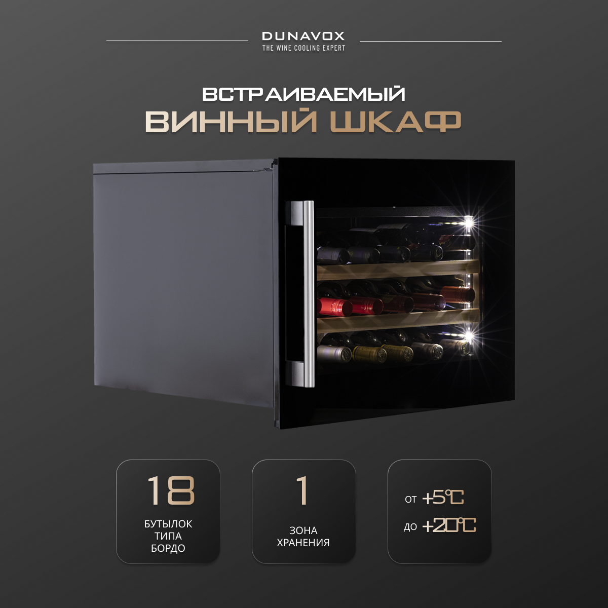 Винный холодильный шкаф Dunavox DAVS-18.46B (встраиваемый холодильник для вина на 18 бутылок) интересное: