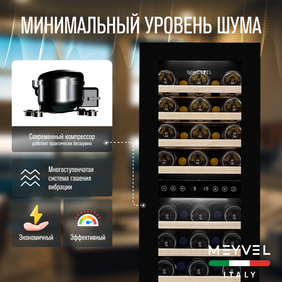 Винный холодильный шкаф Meyvel MV53-KBF2 компрессорный (отдельностоящий холодильник для вина на 53 бутылки) интересное: