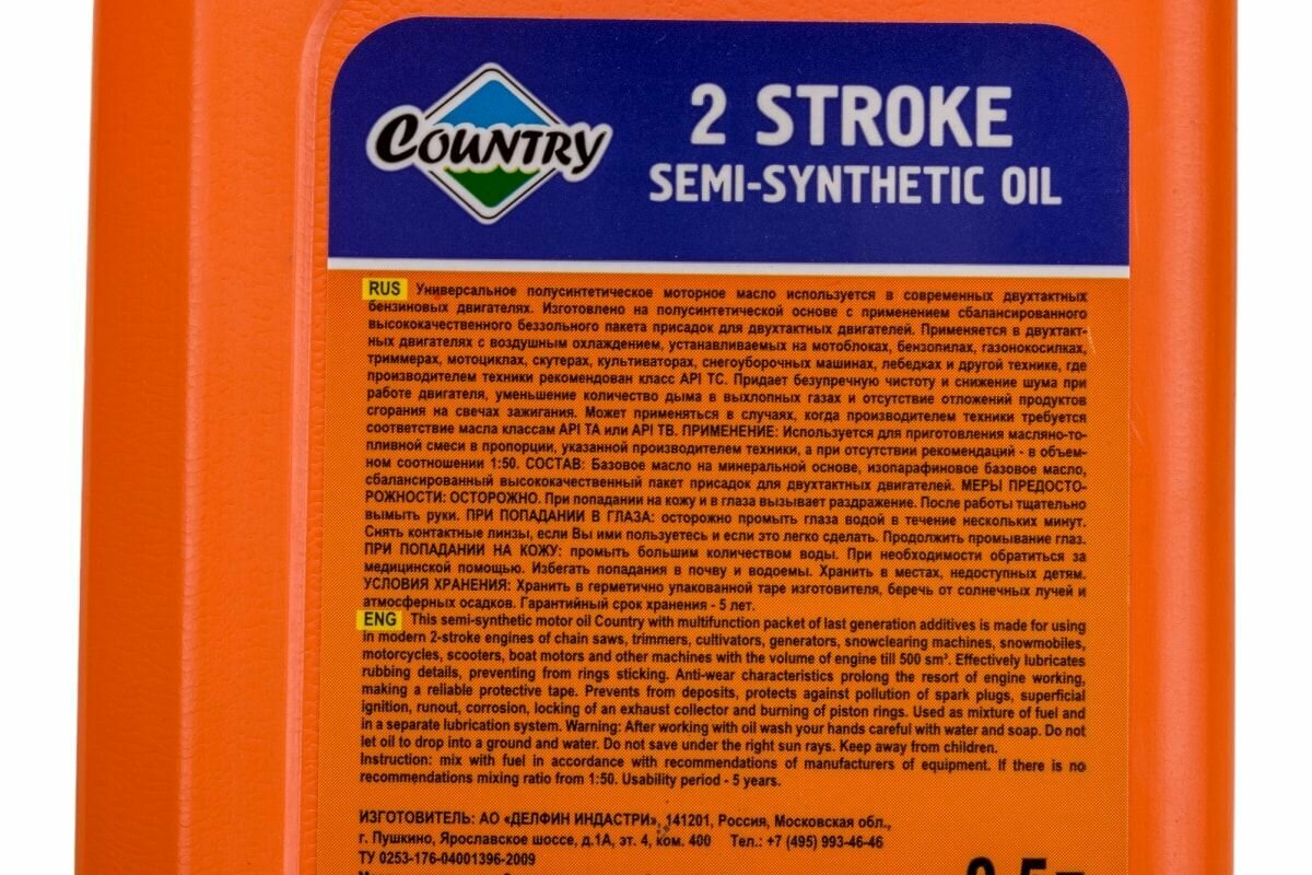Моторное масло Country ST-302 2Т ТС 2-х тактное полусинтетическое 0,5л