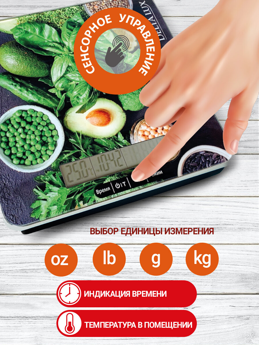 Весы кухонные электронные, стекло, Delta Lux, Салатный микс, платформа, точность 1 г, до 10 кг, LCD-дисплей, DE-005KE интересное: