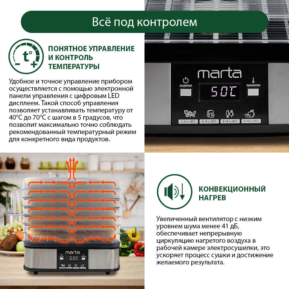 Marta MT-1885 Сушилка для овощей и фруктов черный жемчуг .