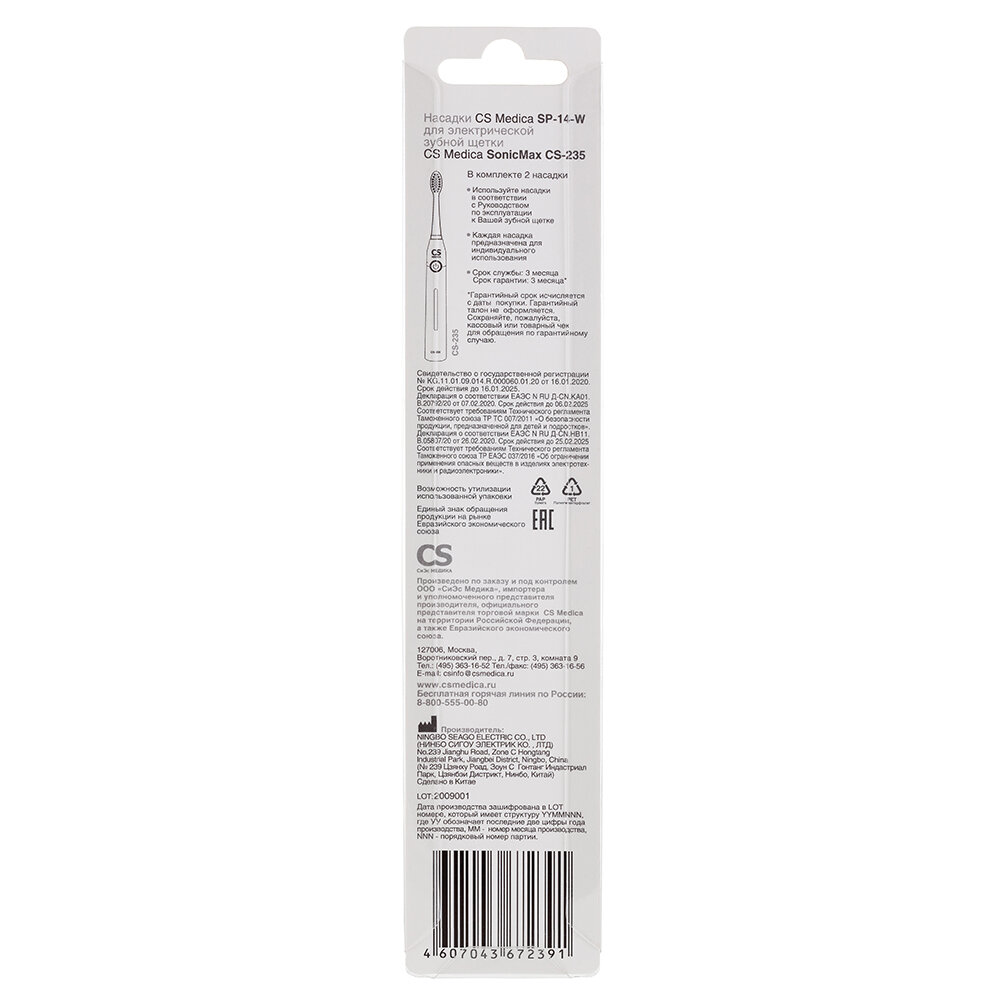 Насадка для электрической зубной щетки CS MEDICA SP-14-W, 2 шт