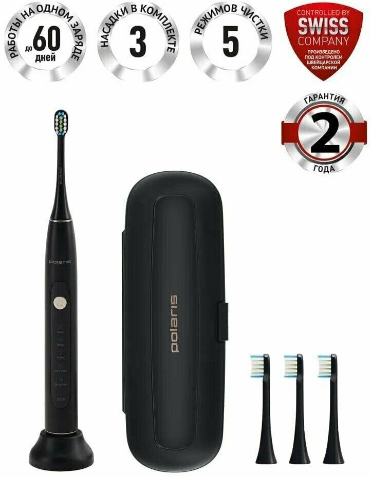 Электрическая зубная щетка Polaris PETB 0503 BL/TC, с дополнительными насадками, черная