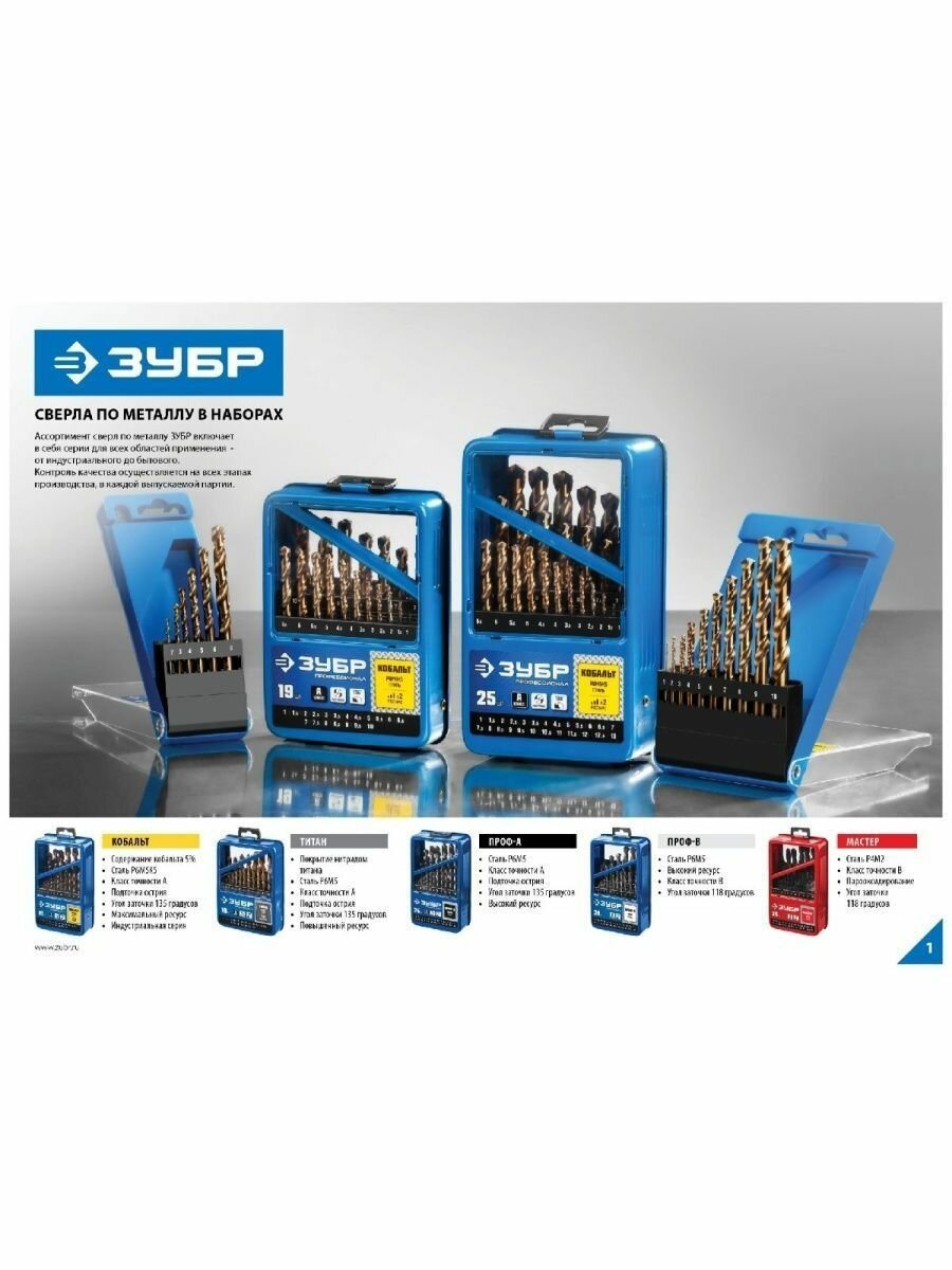 ЗУБР Набор сверл по металлу мастер 1-10 мм, быстрорежущая сталь, класс В Зубр 29605-H370