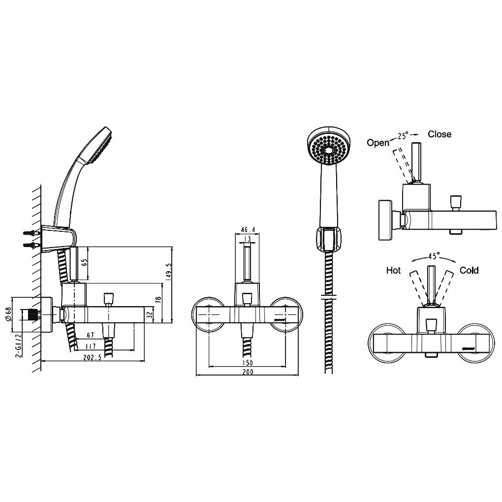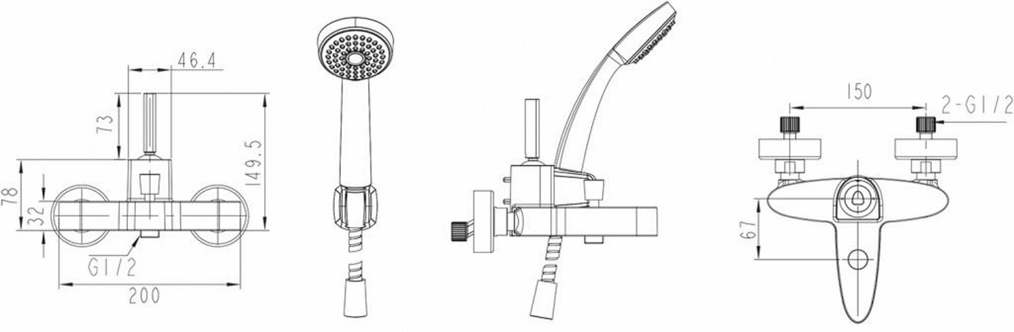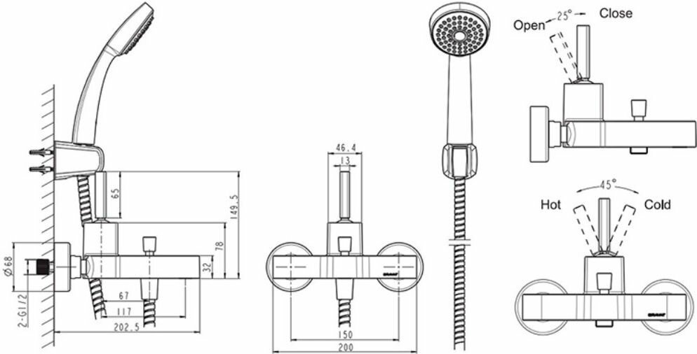 Смеситель для ванны и душа настенный встроенный с душевым комплектом BRUMA ESCUDO 102 200 2NS черный