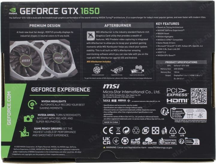 | Название видеокарты | NVIDIA GeForce GTX 1650 |