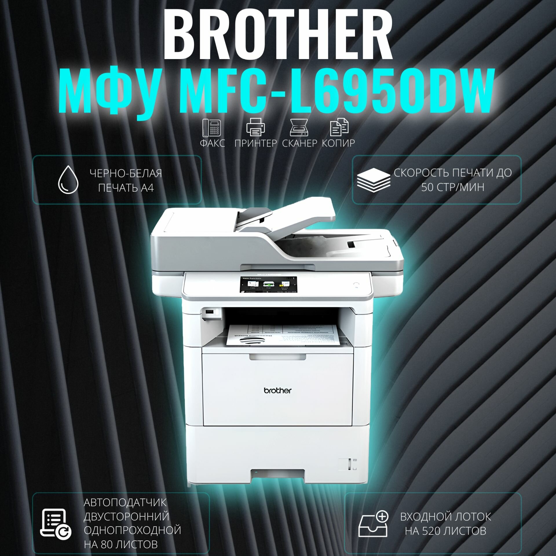 МФУ Brother MFC-L6950DW (P/C/S/F, A4, 1Гб, 50стр/мин, Duplex, SPDF80, GigaLAN, WiFi, лоток 520л, USB, старт.тонер 12000 стр.)