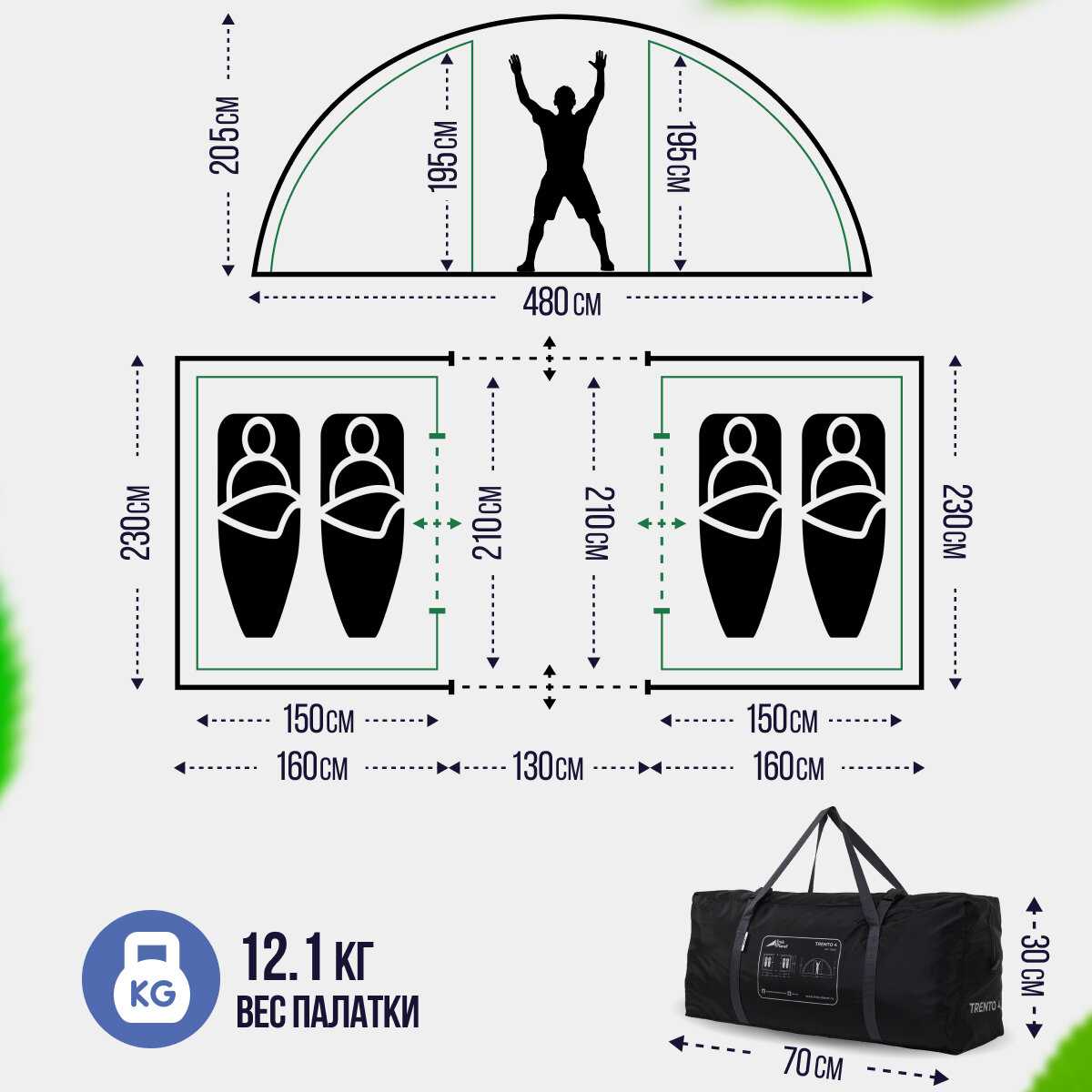 Палатка TREK PLANET Trento 4 четырехместная, зеленый