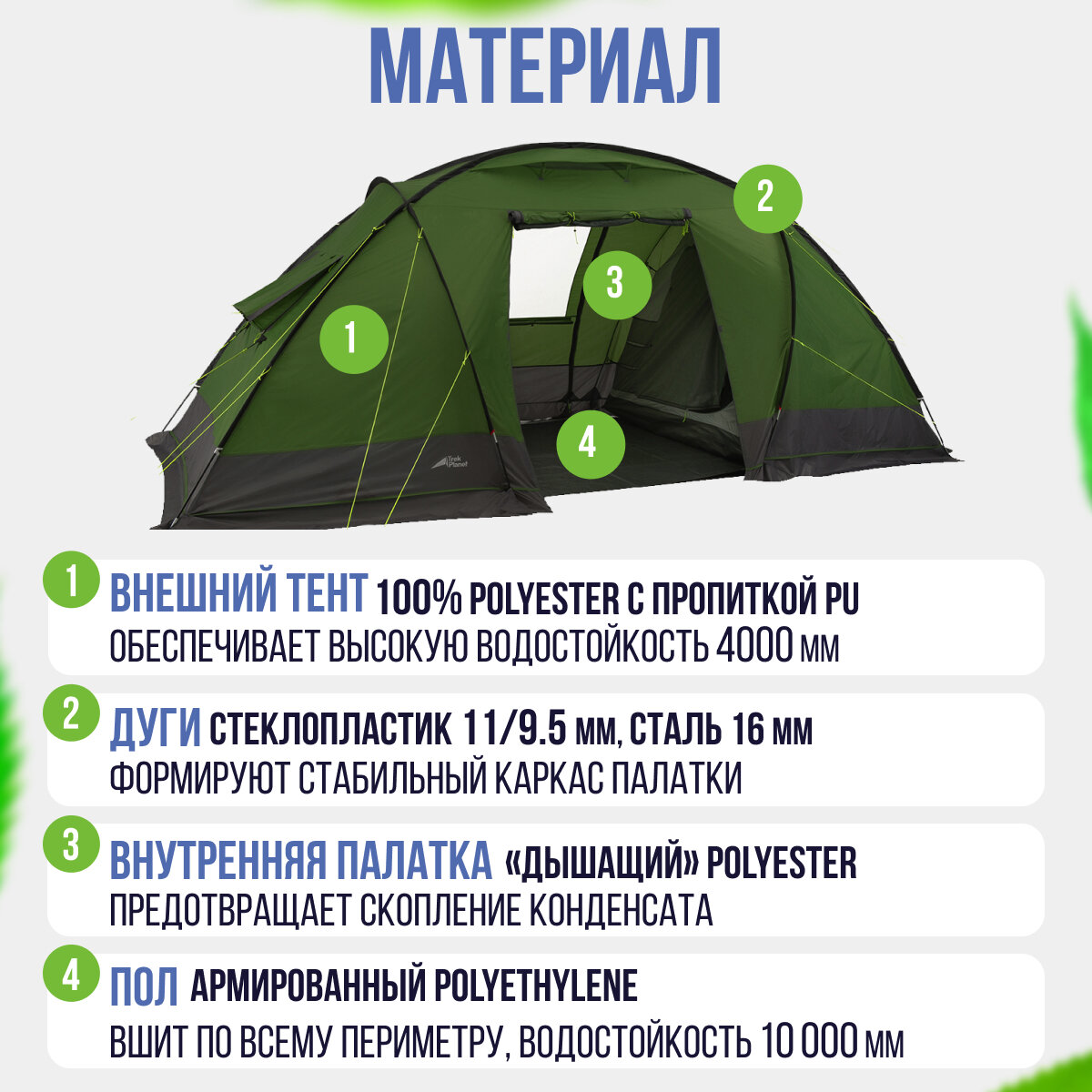 Четырехместная кемпинговая палатка Trek Planet Trento 4 для продолжительного кемпинга интересное: