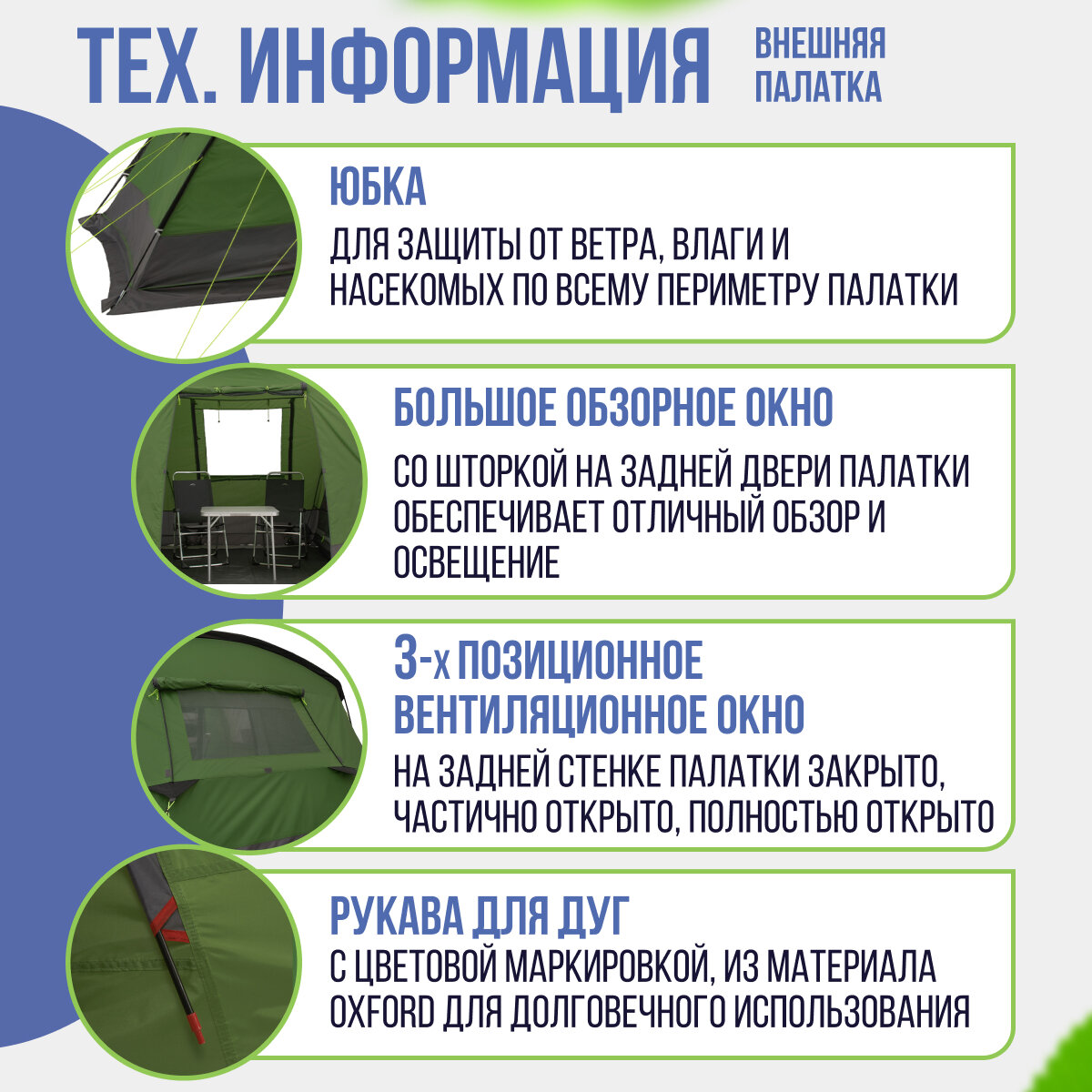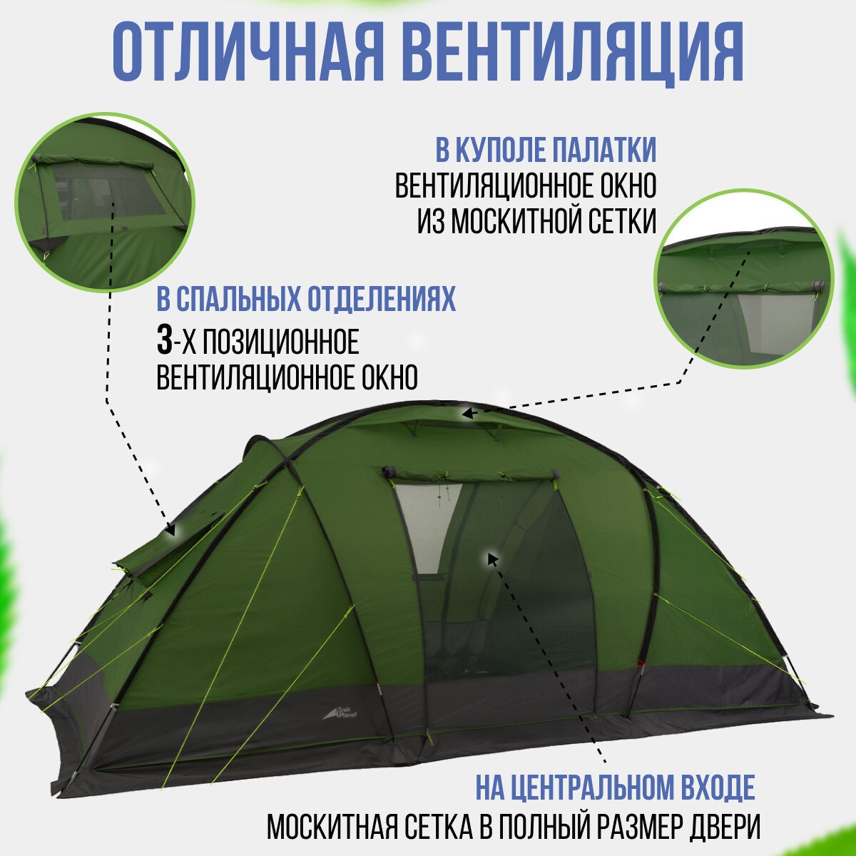 Палатка четырехместная TREK PLANET Trento 4, цвет: зеленый