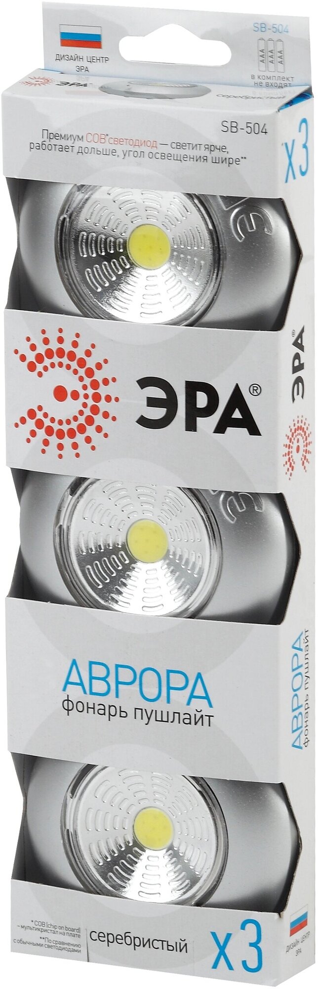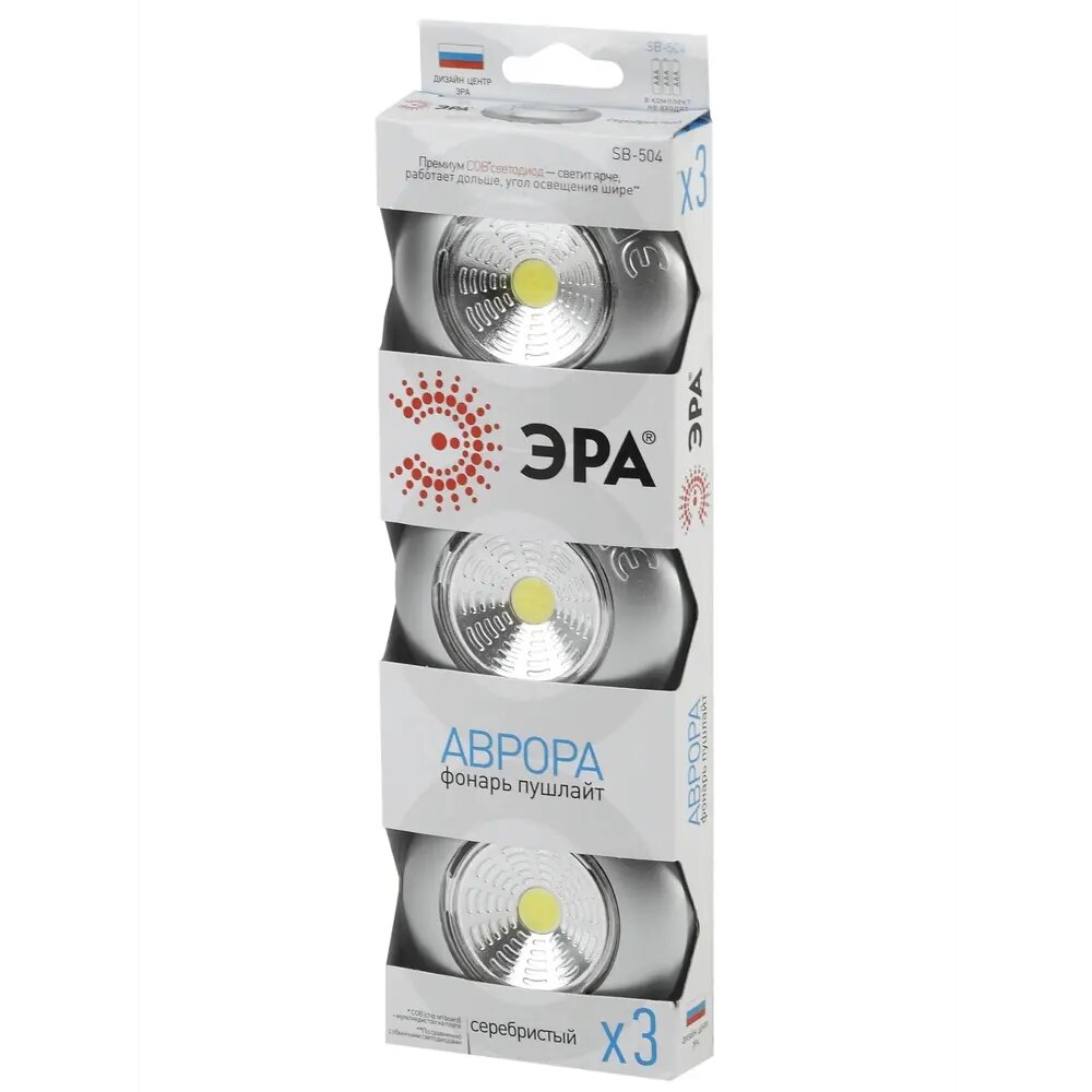 Купить Фонарь светодиодный ЭРА SB-504 "Аврора" COB, 3xAAA, серебристый, (3 штуки в коробке) пушлайт