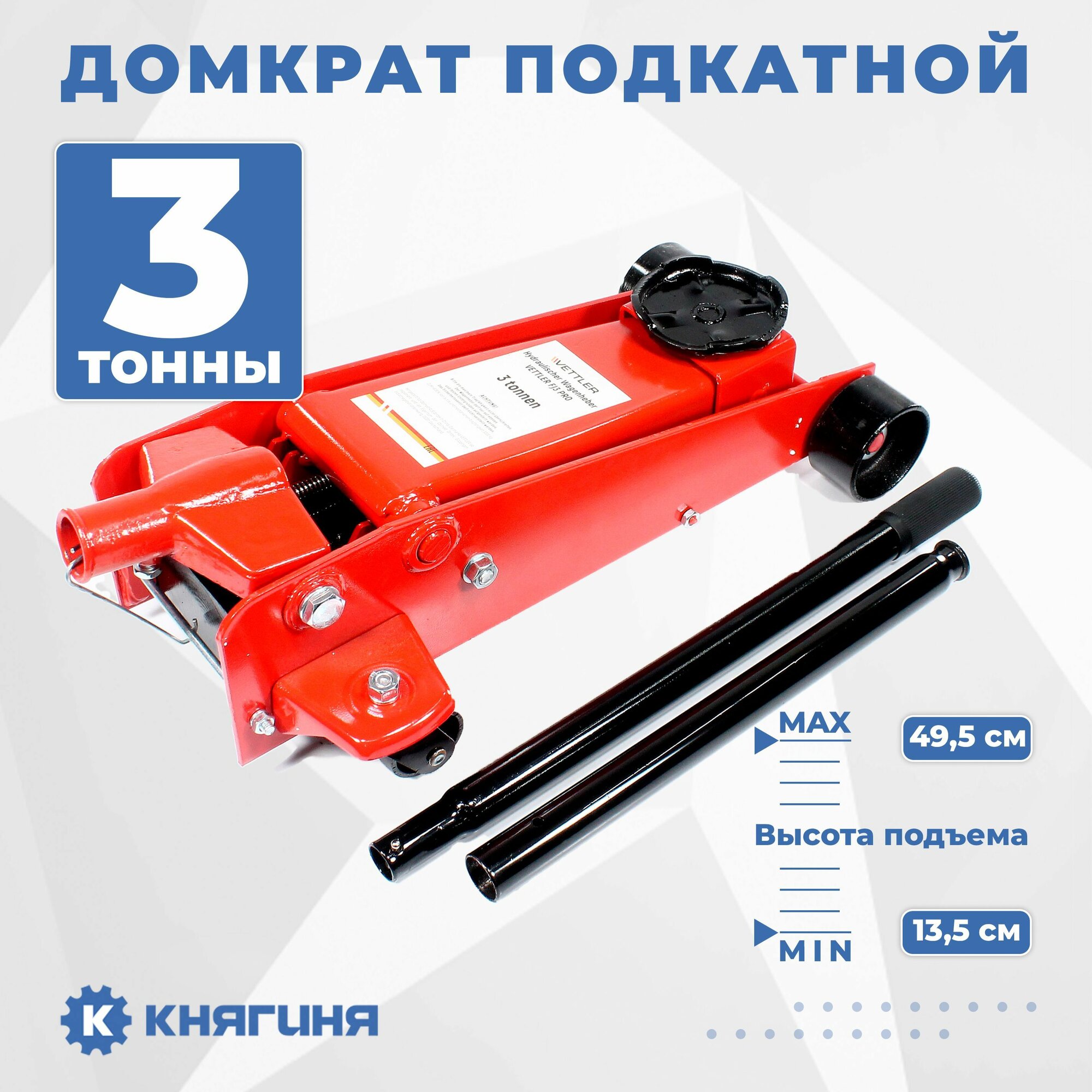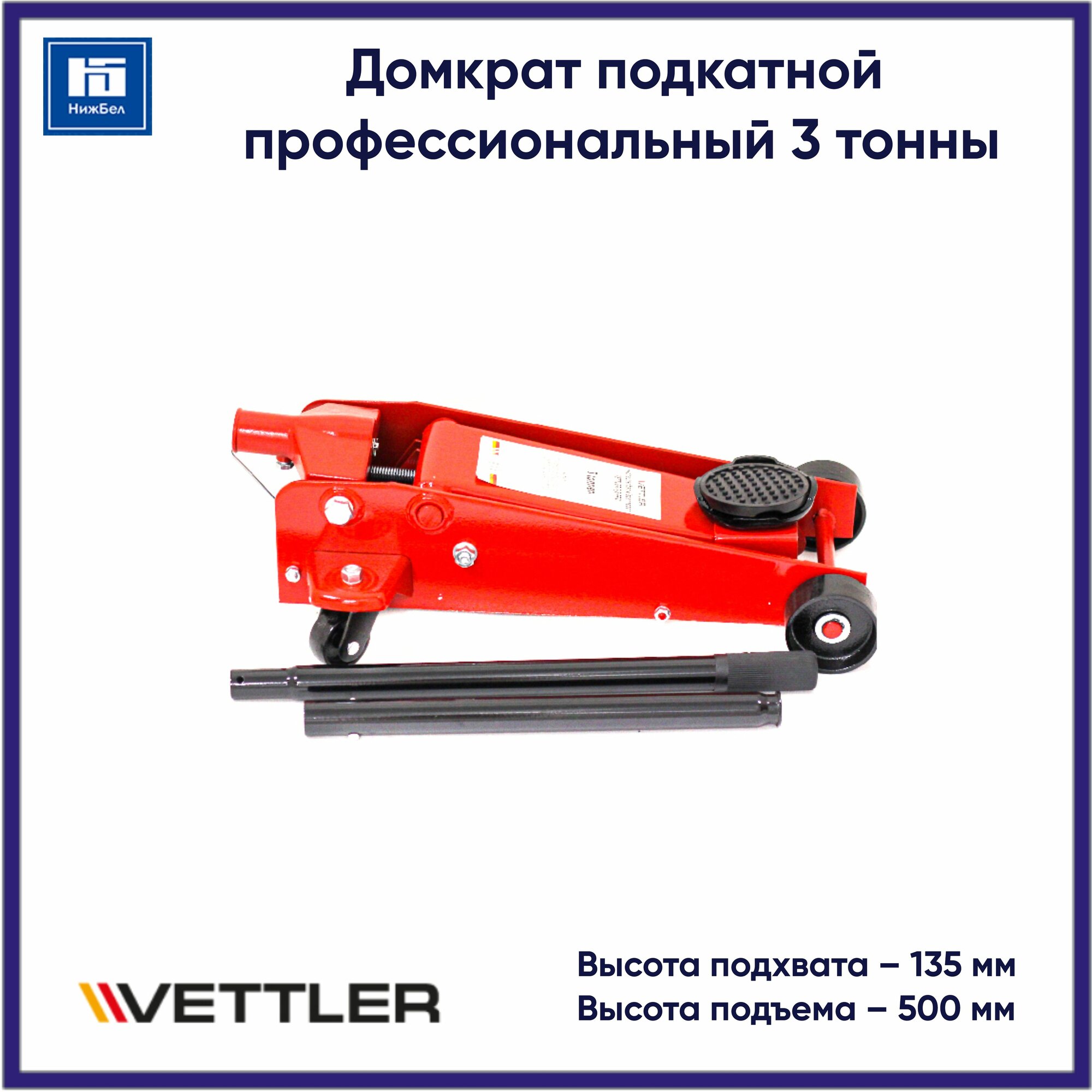 Купить VETTLER VEFJ3PRO домкрат гидравич 3Т подкатной PROF 135X495