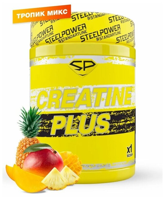 Креатин моногидрат STEELPOWER для силы и набора мышечной массы CREATINE PLUS, 300 гр, Тропик Микс