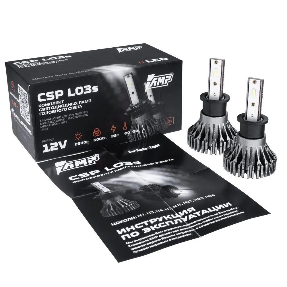 Купить Светодиодная автомобильная лампа AMP CSP L03s H3 2шт