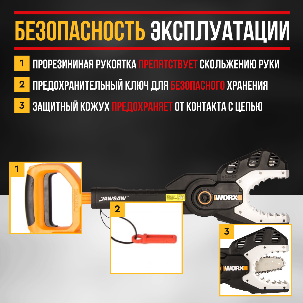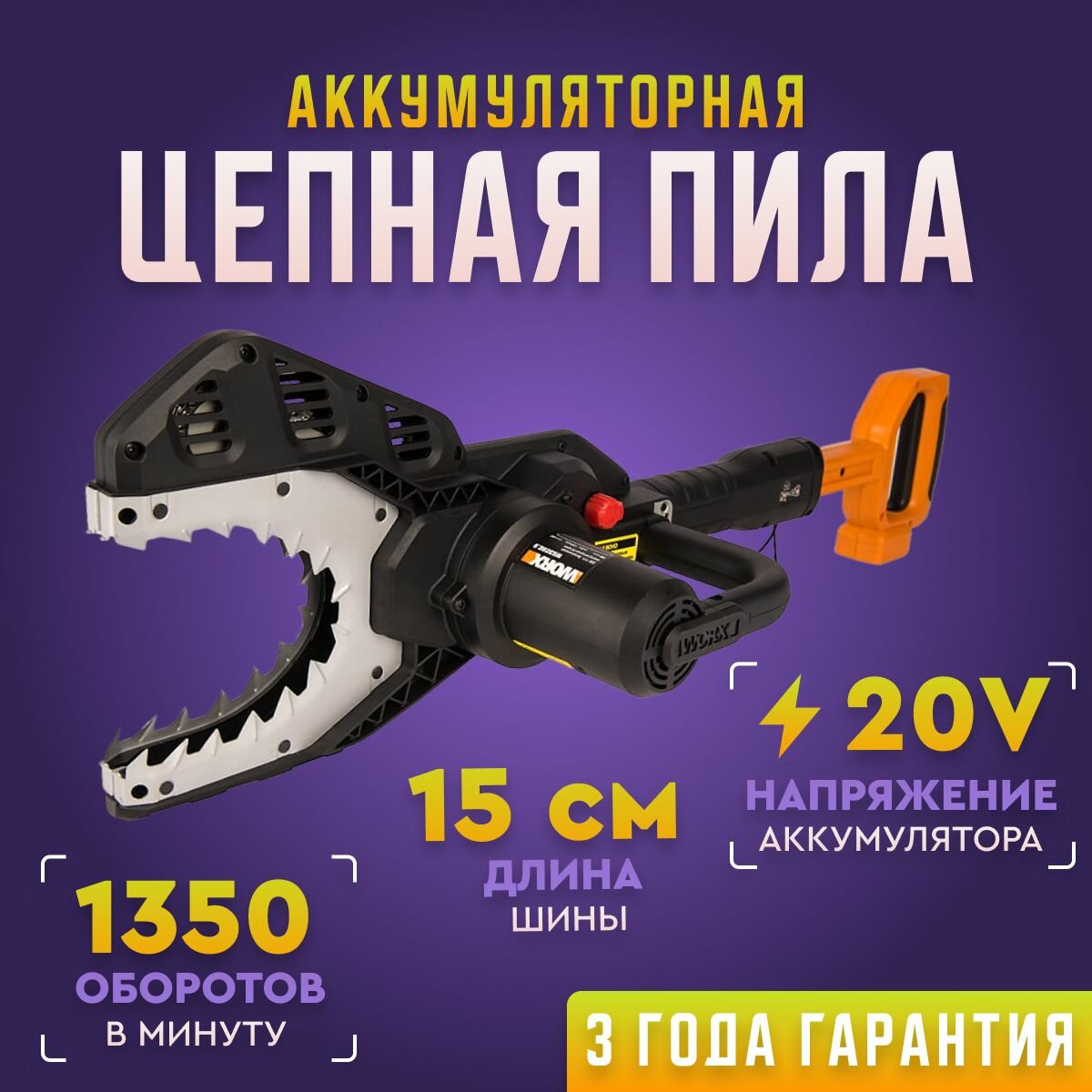 Пила аккумуляторная цепная WORX JawSaw, 20В, без АКБ и ЗУ интересное: