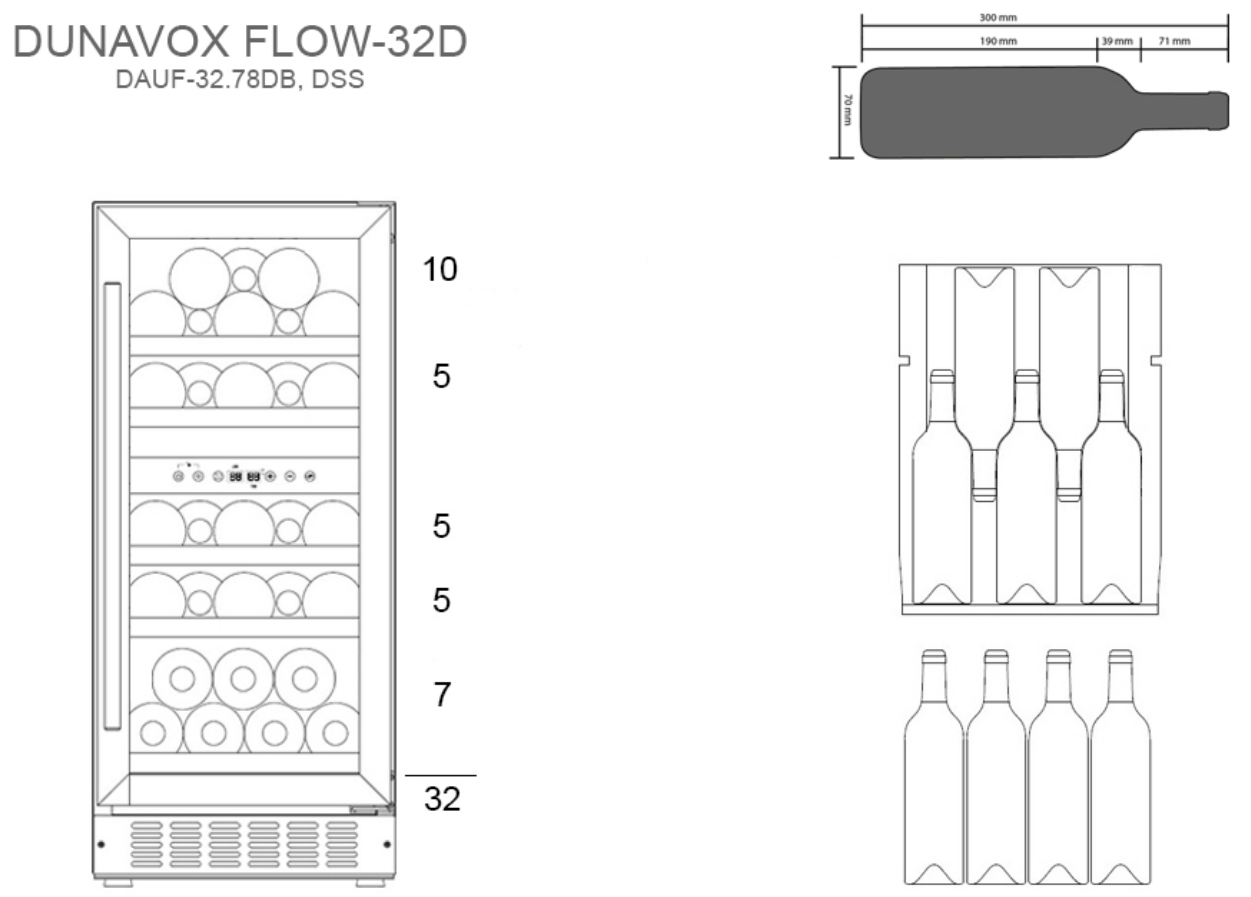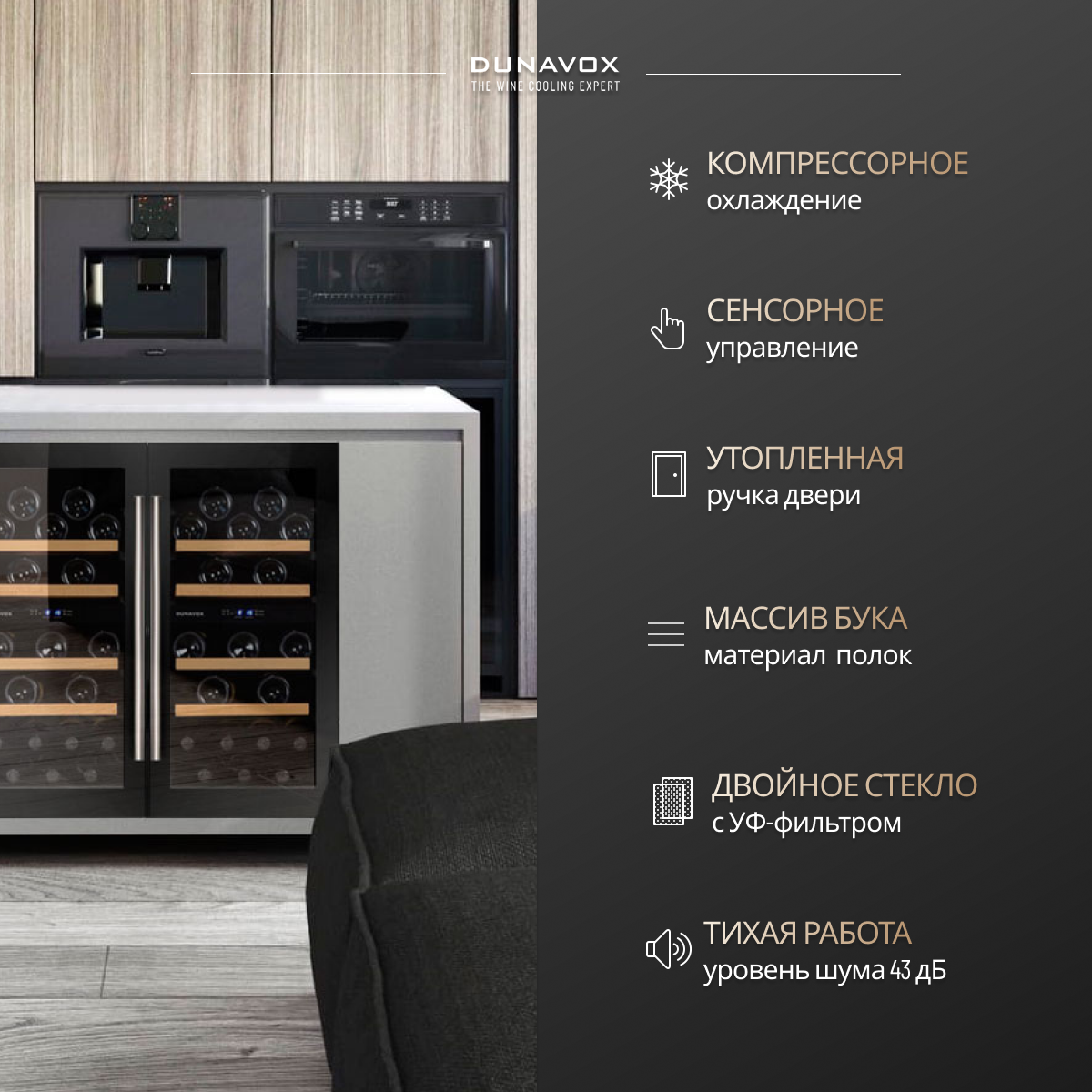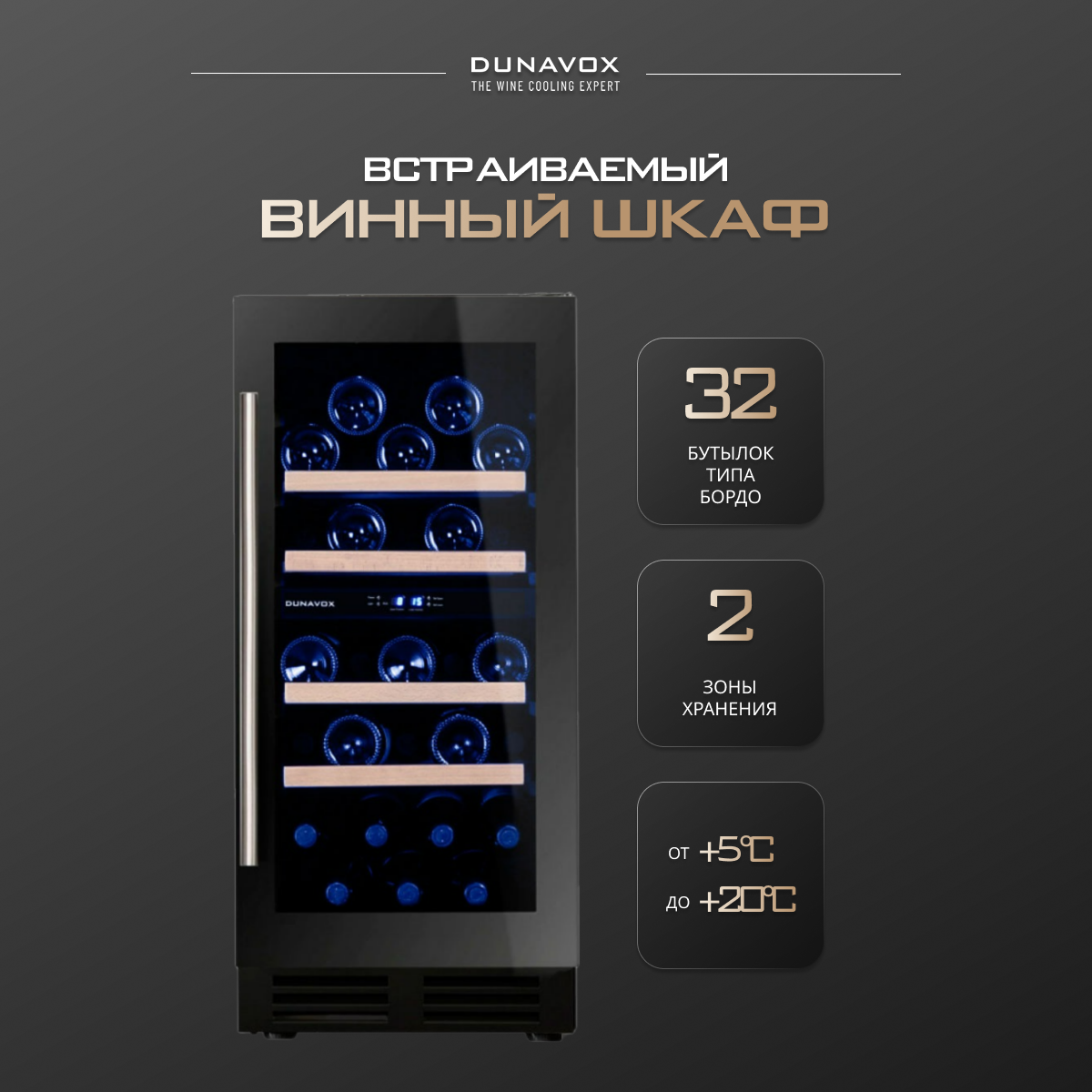 Встраиваемый винный шкаф Dunavox DAUF-32.78DB компрессорный (встраиваемый / отдельностоящий холодильник для вина на 32 бутылки) интересное: