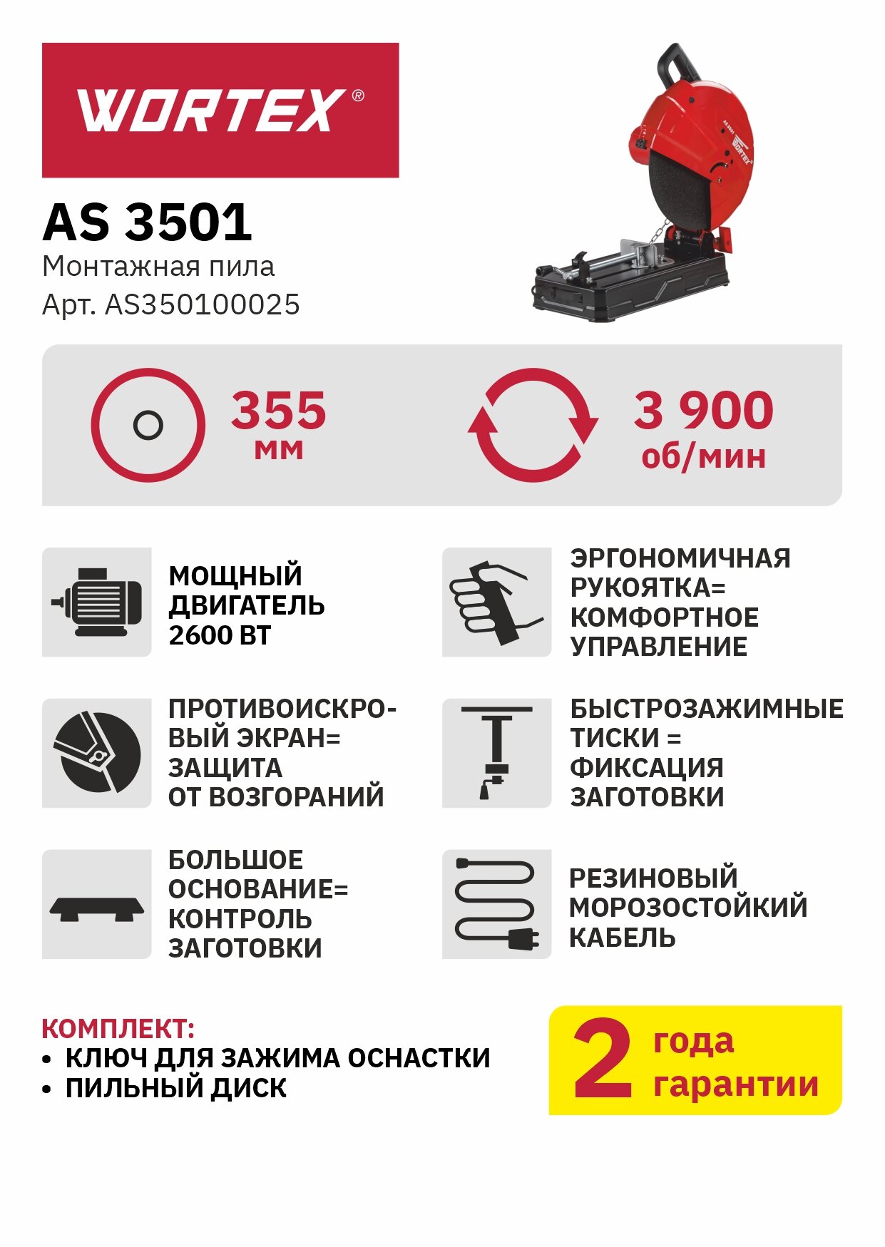 Пила отрезная по металлу WORTEX AS 3501 (AS350100025)