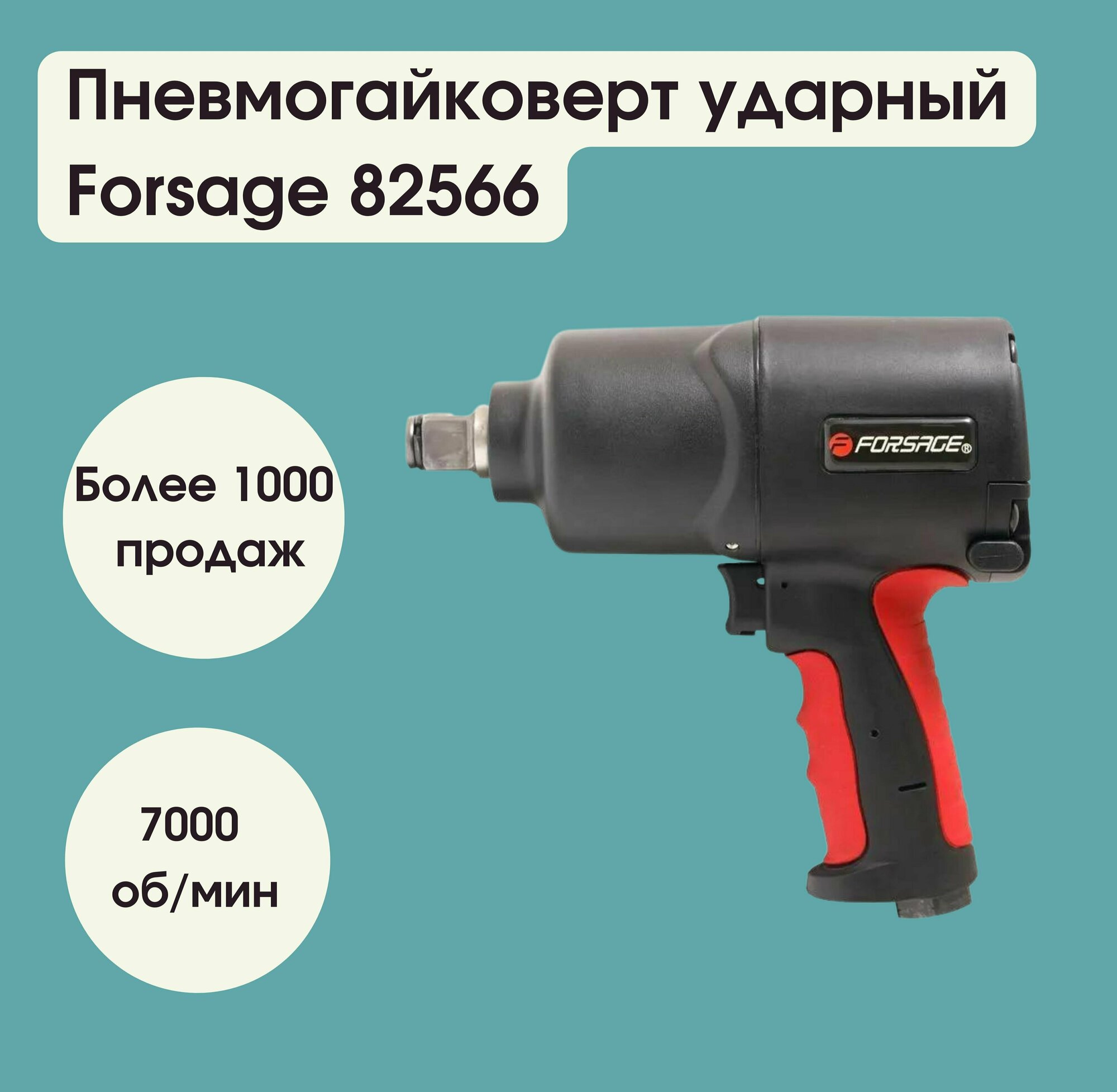 FORSAGE F-82566 Пневмогайковерт ударный, 3/4 inch, 1800 Hм, 7000 об/мин, 269л/мин, 6.3 бар, вес 3кг, Twin Hammer с реверсом и регулировкой момента затяжки, в облегченном корпусе