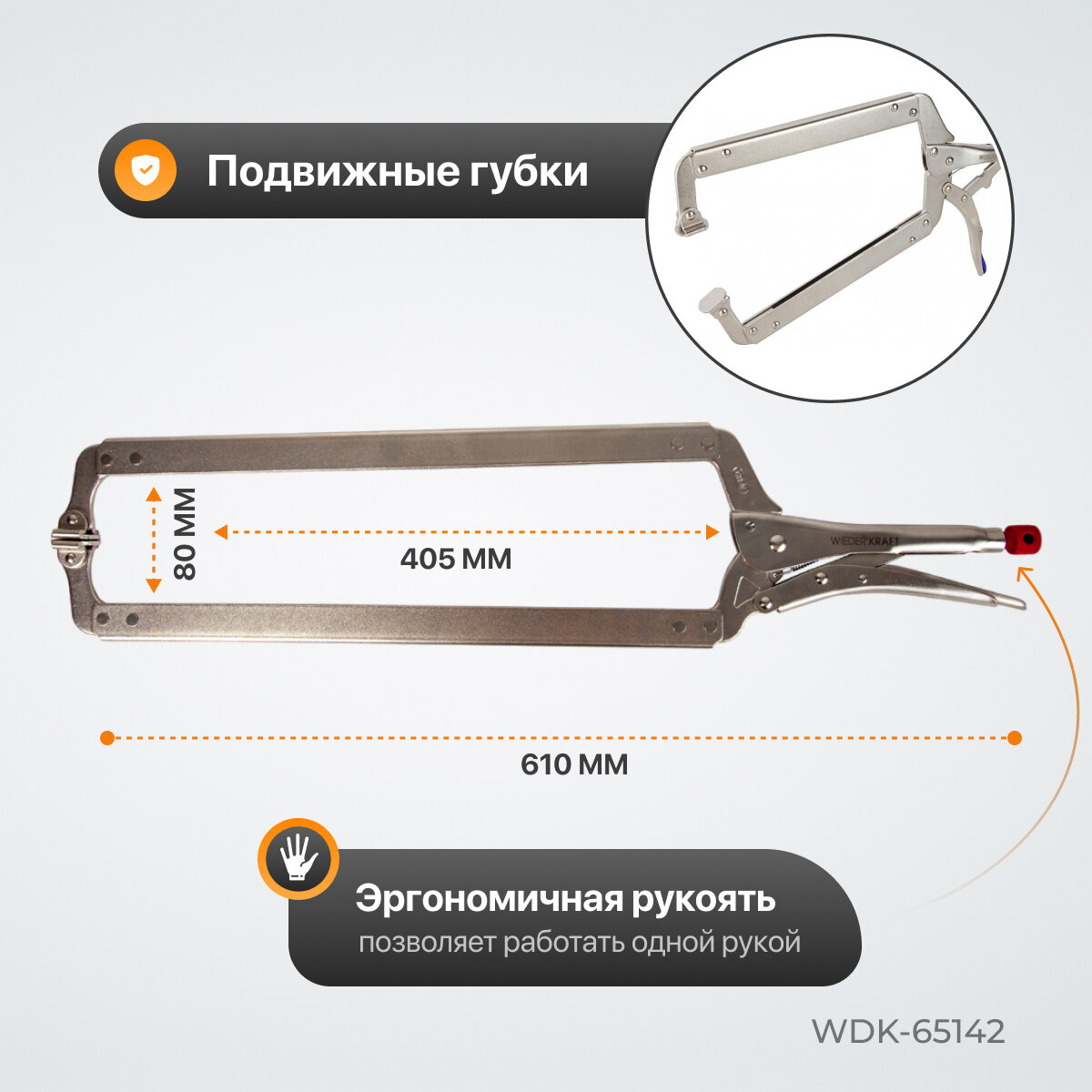 WIEDERKRAFT Зажим сварочный С-образный с фиксатором WDK-65142