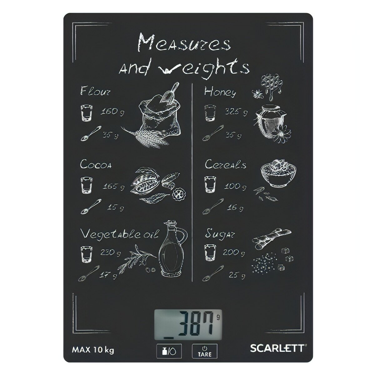 Весы кухонные SCARLETT SC-KS57P64, электронный дисплей, max вес 10кг, тарокомпенсация, стекло интересное: