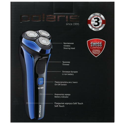 Бритва Polaris PMR 0304 R PRO (аккум./сеть LI-ION, сухое и влажное бритье) графитовый/синий интересное: