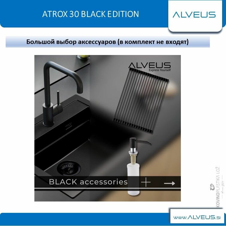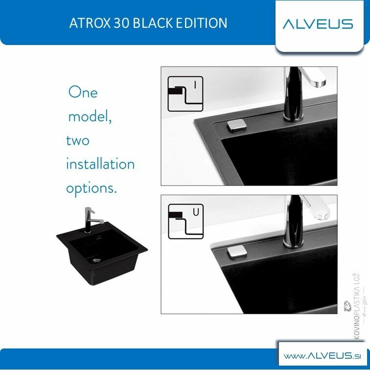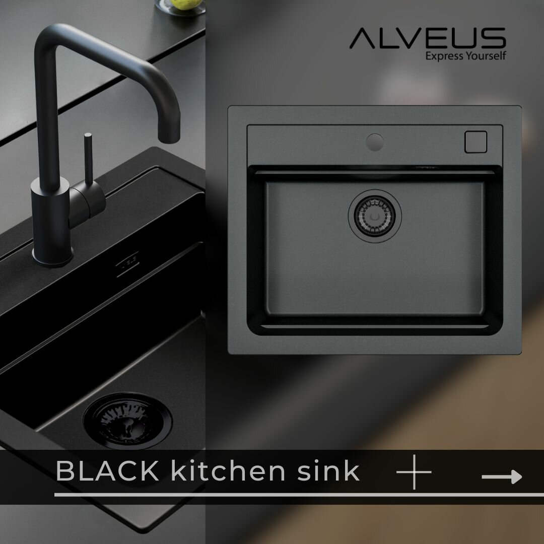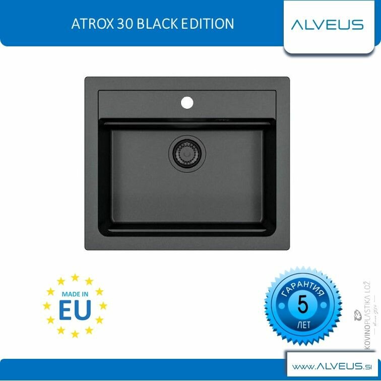 Купить Мойка для кухни ALVEUS GRANITAL ATROX 30 CARBON - G91 590 X 500 1X в комплекте с сифоном 1148149 BLACK EDITION