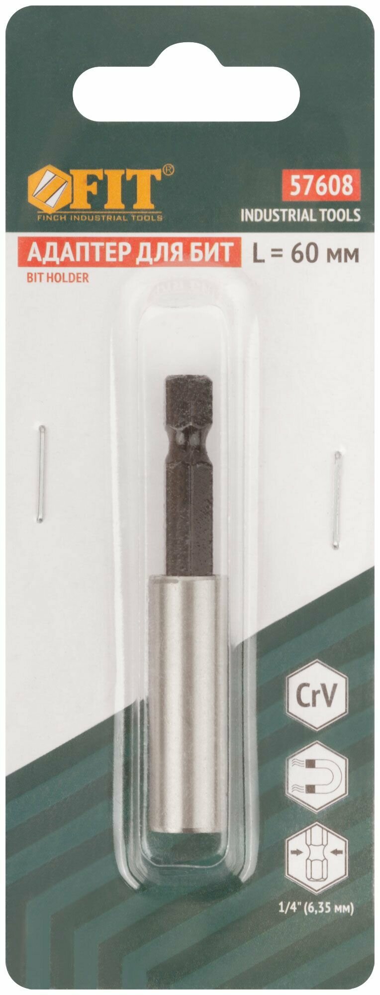 Адаптер для бит, магнитный фиксатор, хвостовик CrV сталь, 60 мм ( блистер ) Fit