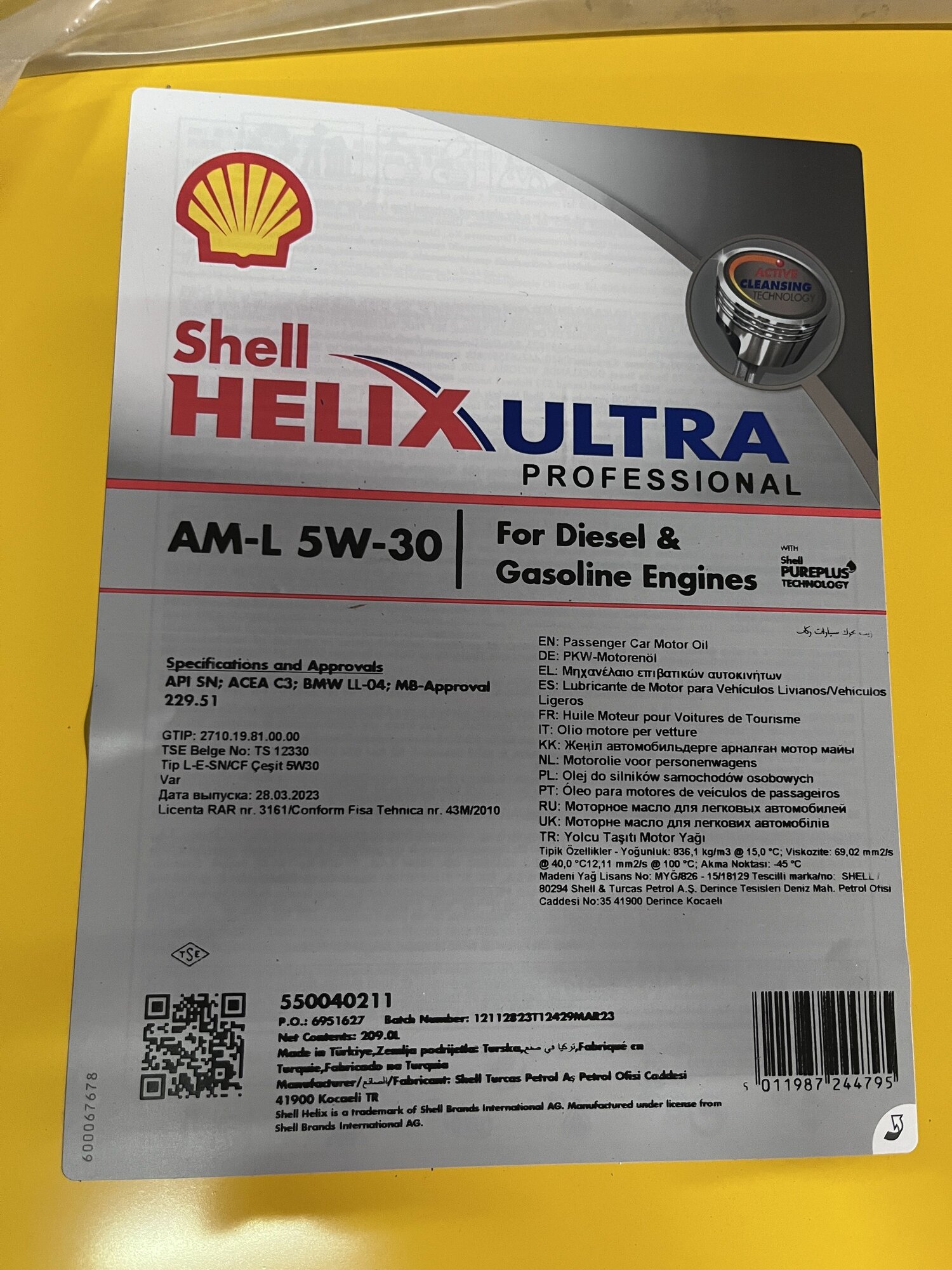 Синтетическое моторное масло SHELL Helix Ultra Professional AM-L 5W-30 209л