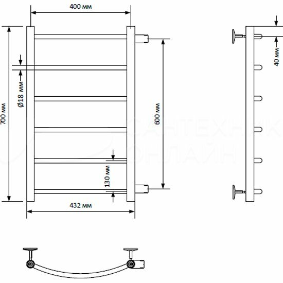 Полотенцесушитель INDIGO Arc 1" - 1/2 70/40, м/о 60 см, боковое подключение LASW70-40-б/п-60