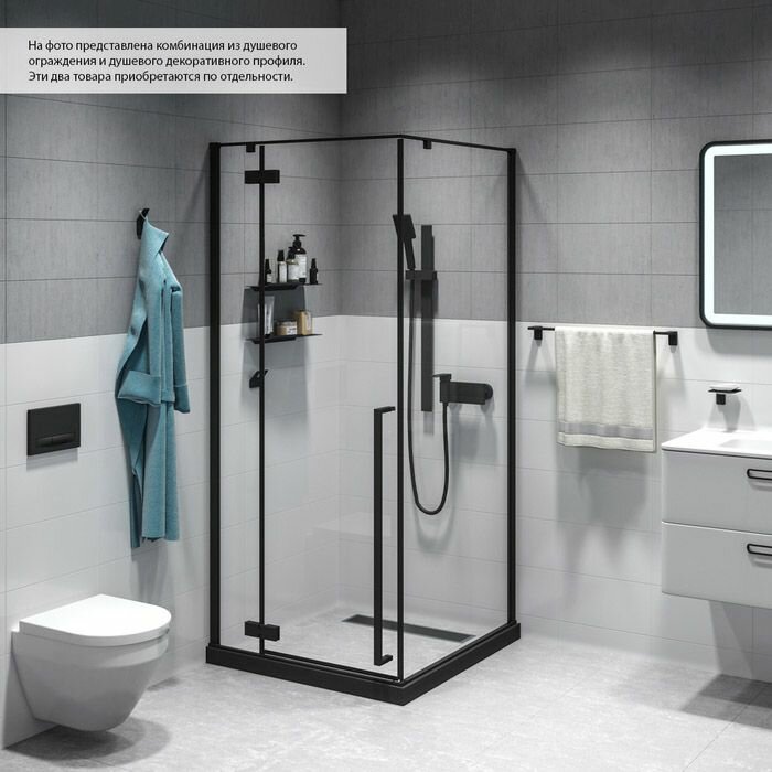 Душевое ограждение, квадр., черный ал. проф., 90х90х195, Slide, IDDIS, SLI6BS0i23