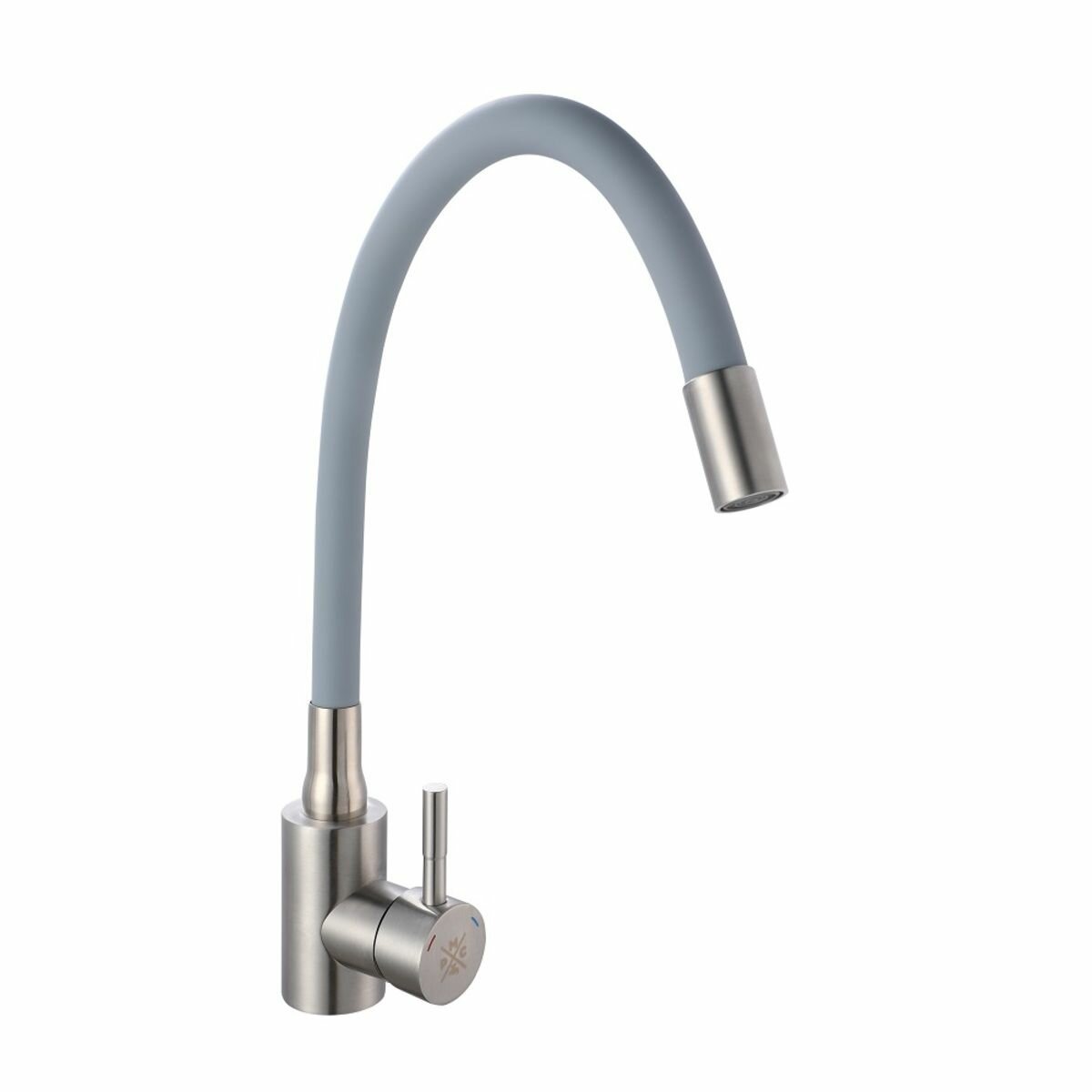 Смеситель для кухни, РМС, гибк излив, с картриджем, сер, SUS124GY-016F