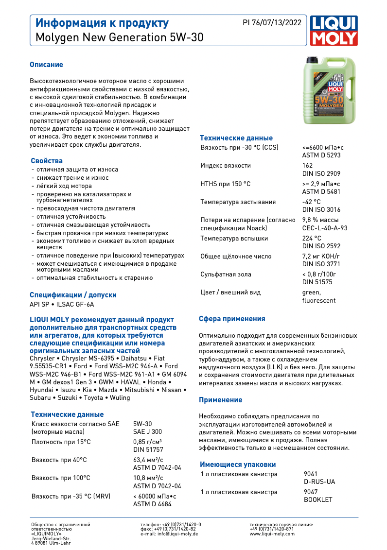 Liqui moly Molygen New Generation 5w-30 Sn Ilsac Gf-5 (1л) Lm 9041