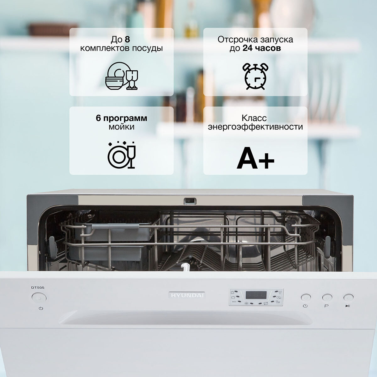 Ниже Вы можете прочитать отзывы на Посудомоечная машина компактная Hyundai DT505, Система защиты от протечек Aqua Stop, Белый, ознакомится с подробными характеристиками, посмотреть интересные обзоры и фотографии на Посудомоечная машина компактная Hyundai DT505, Система защиты от протечек Aqua Stop, Белый.