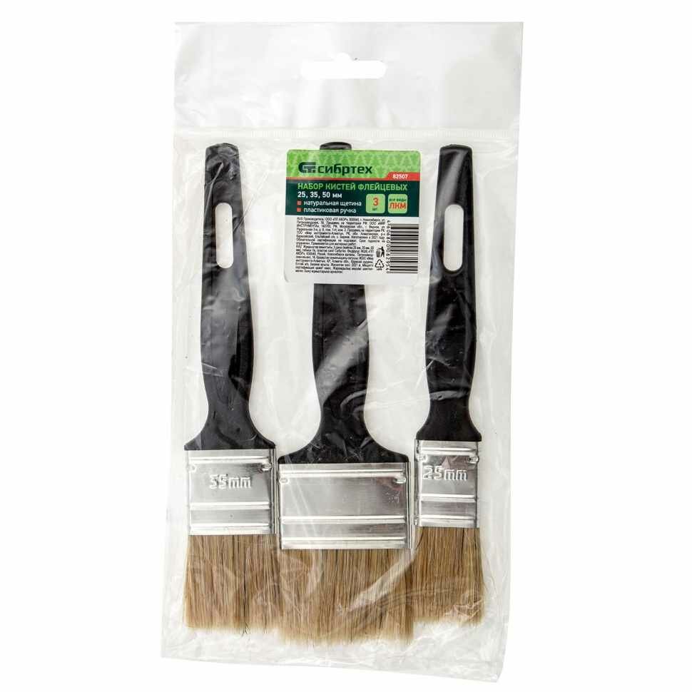 82507 Набор кистей флейцевых 3шт. (25 мм, 35 мм, 50 мм), натуральная щетина, пластиковая ручка Сибртех
