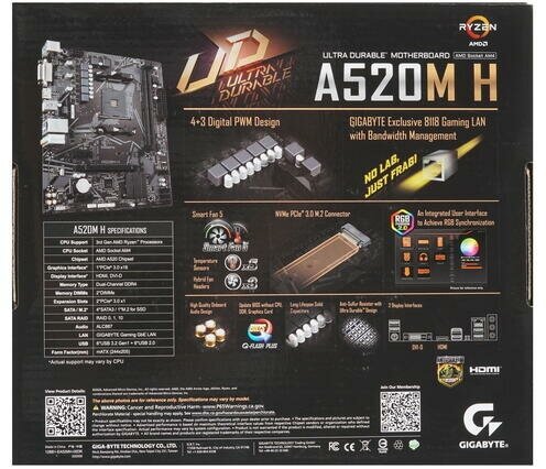 Материнская плата GIGABYTE A520M H, SocketAM4, AMD A520, mATX, Ret