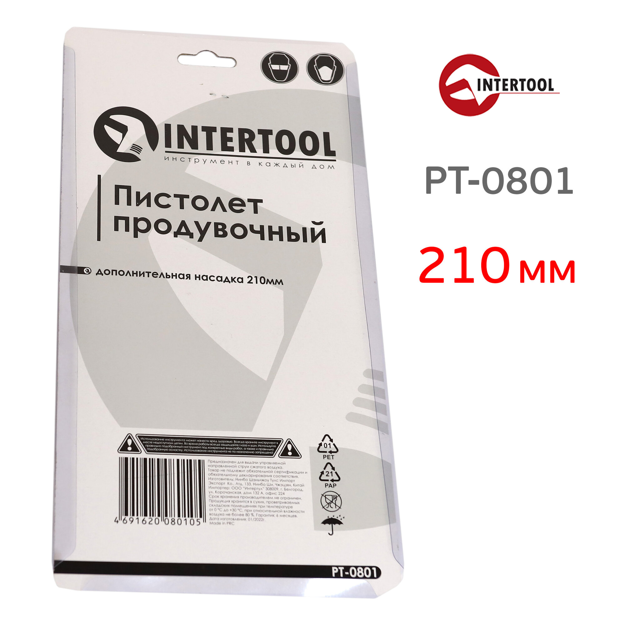 Пистолет продувочный (210мм) InterTool PT-0801 длинное сопло интересное: