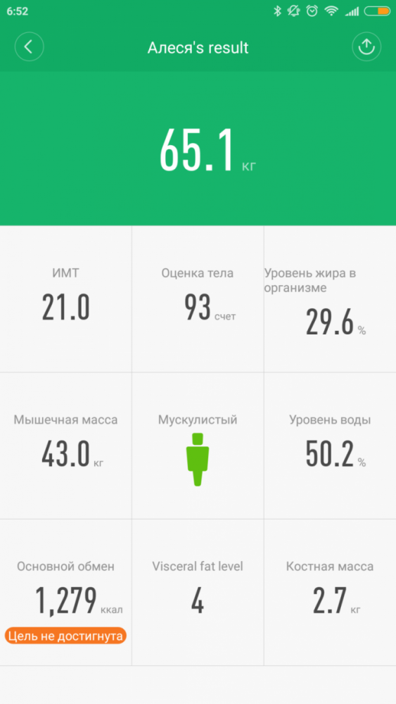 | Отзыв: | Показывают точно, при помощи приложения можно следить за прогрессом. |