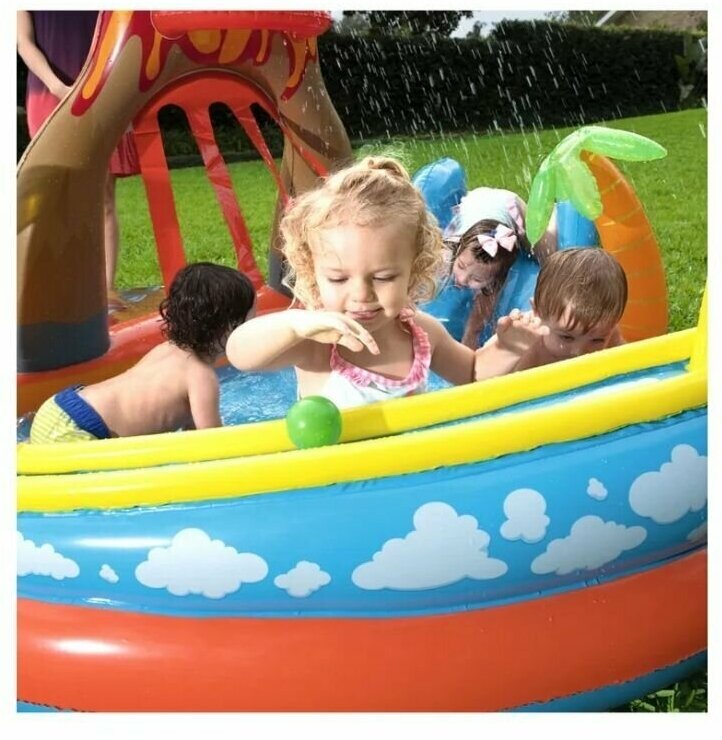 Игровой центр с бассейном, Bestway Lava Lagoon, 265х265х104 см "Вулкан" с разбрызгивателем, горкой и игрушками, 208л интересное: