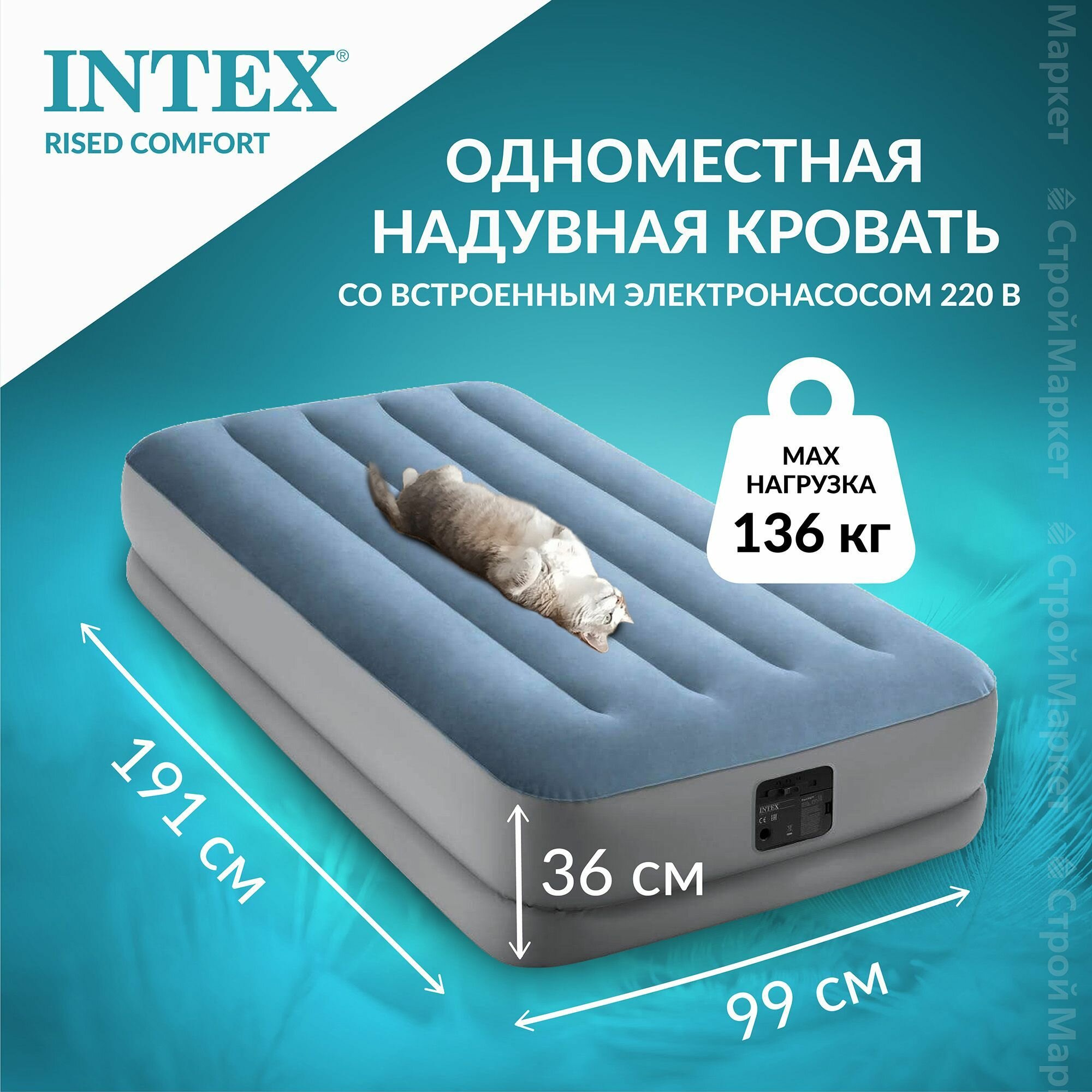 Надувная кровать Intex Raised Comfort Airbed (Twin), 99x191х36см, со встроенным насосом 220, 64166
