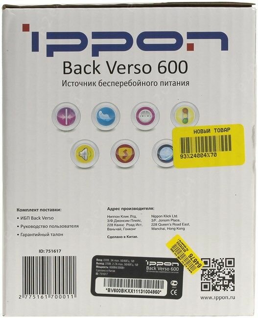 ИБП Ippon Back Verso 600 9400-4392-02 .