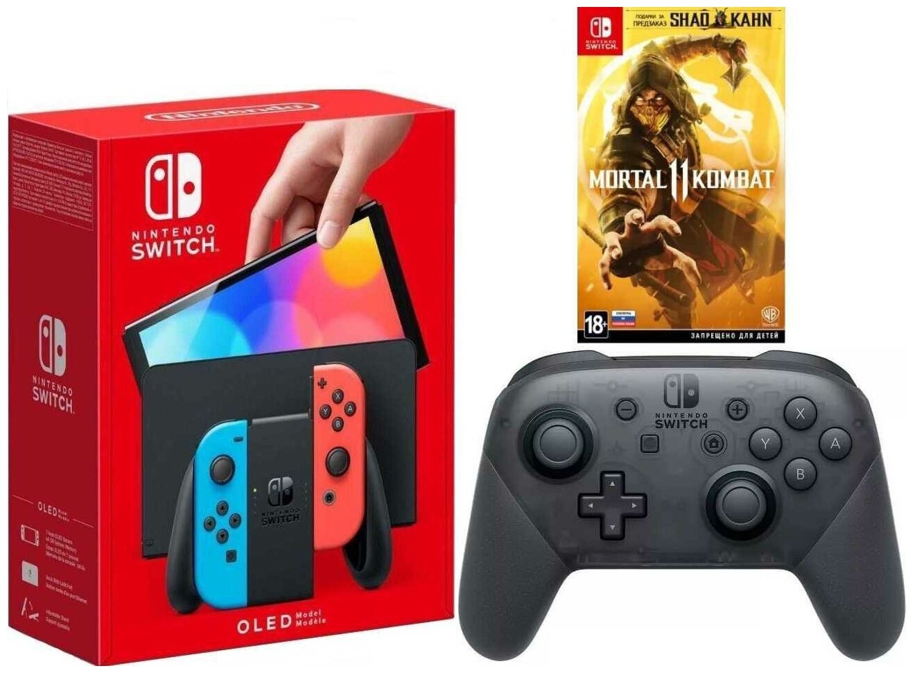 Купить Игровая приставка Nintendo Switch OLED 64 ГБ, Mortal Kombat 11, неоновый синий/неоновый красный