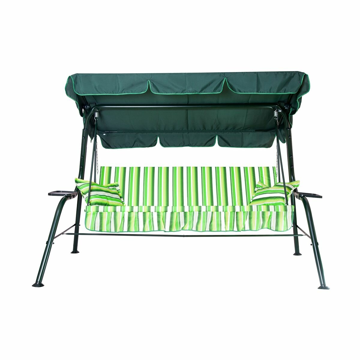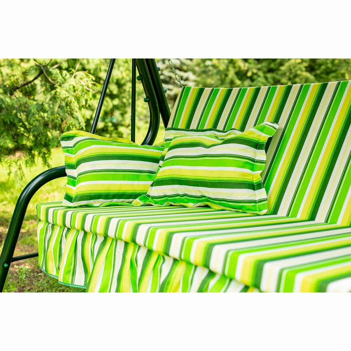 Купить Качели садовые 3-х местные Ольса Стандарт Nova каркас зеленый, ткань полоска с904