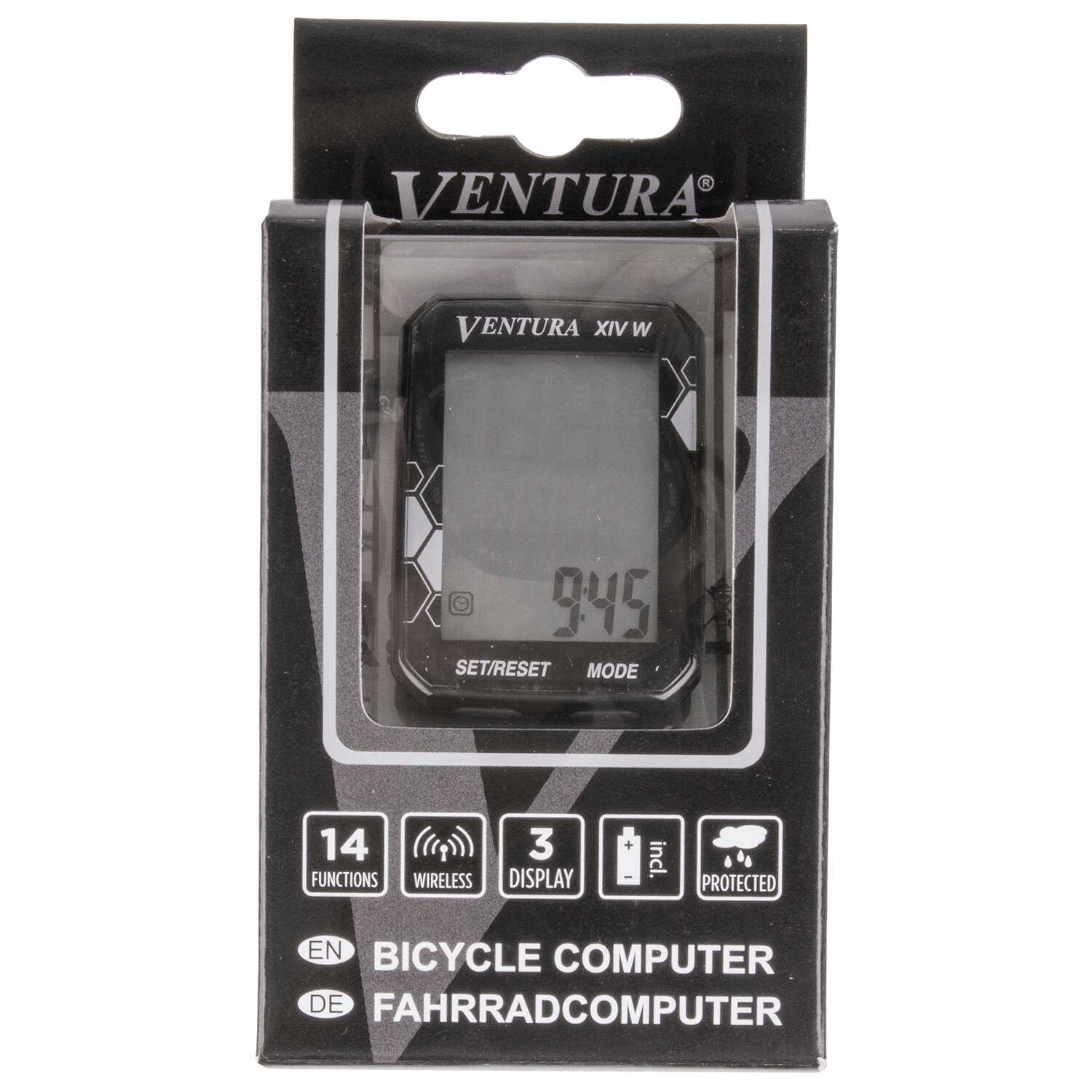 Купить Велокомпьютер беспроводной 14 ф-ций строчный дисплей, влагозащит. столик с измен. угла накл. Новый дизайн черный VENTURA XIV W