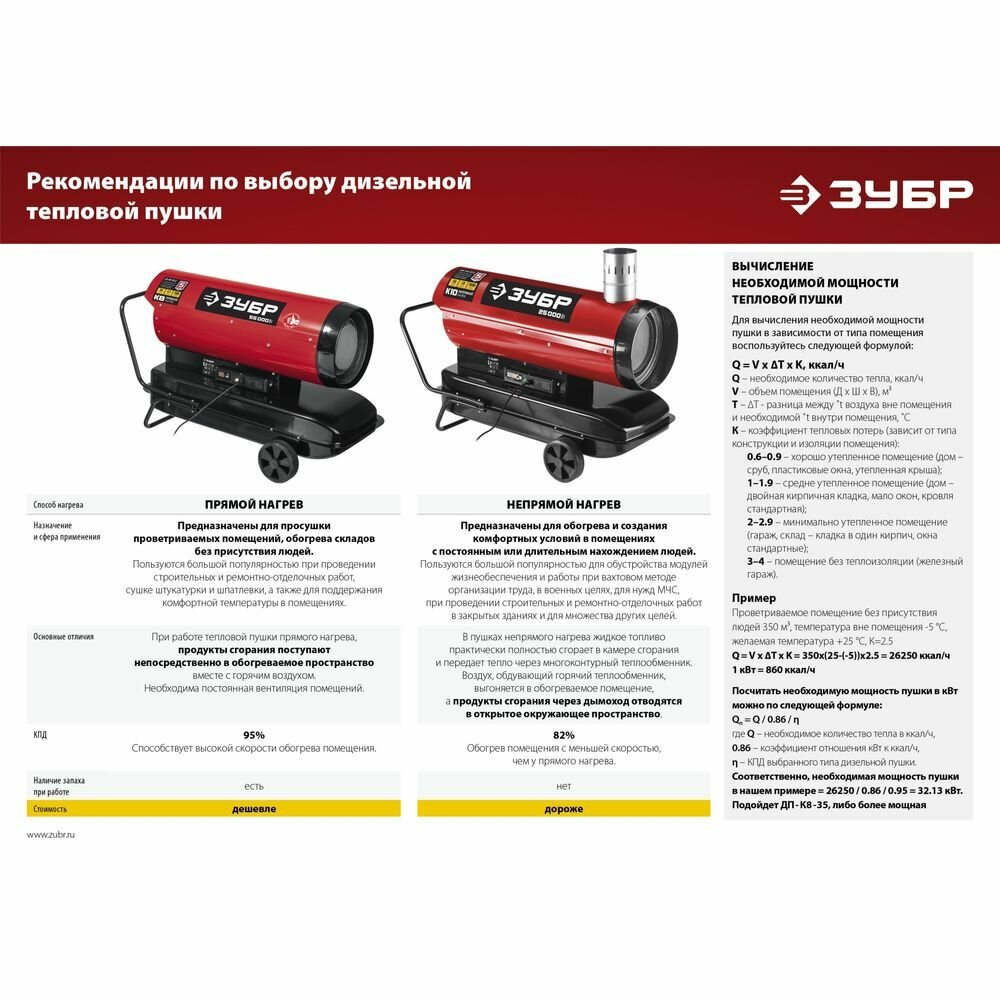 Ниже Вы можете прочитать отзывы на Зубр Дизельная тепловая пушка ЗУБР, 25 кВт, ознакомится с подробными характеристиками, посмотреть интересные обзоры и фотографии на Зубр Дизельная тепловая пушка ЗУБР, 25 кВт.